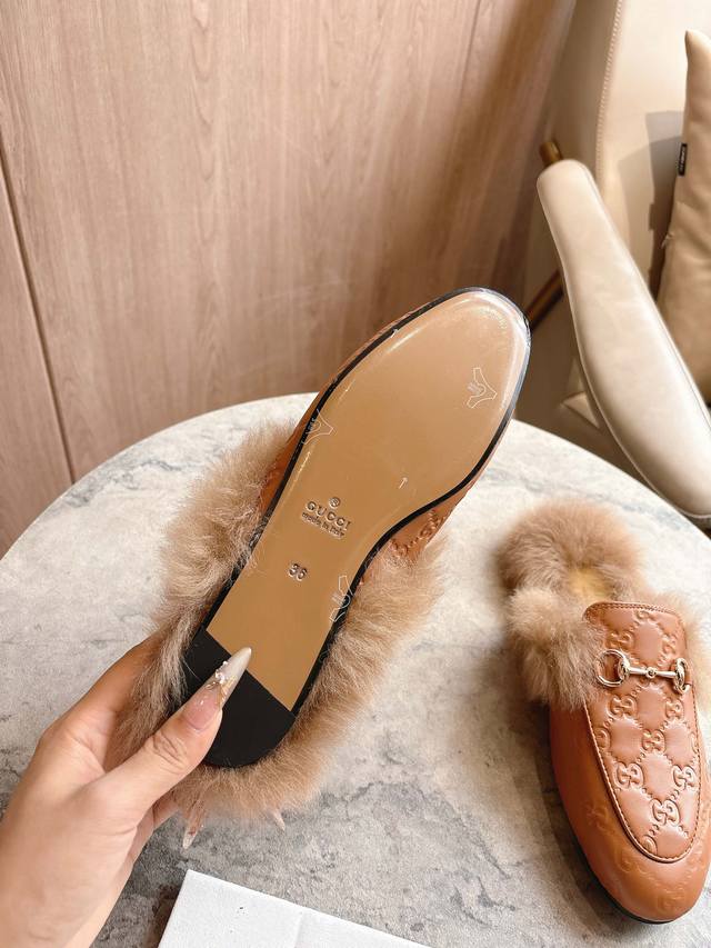1803-2* Brown ?35-42 As an outstanding representative of Gucci's design heritage, the Jordaan series horsebit loafers vividly embody classic elegance. These shoes are crafted from calfskin leather with the brand's iconic monogram pattern and Tuscan hand hair, achieving a timeless classic. The shoes are soft to the touch, with a refined and flowing silhouette, showcasing everyday elegance. Brown Gg Calfskin Leather Women's Light Gold Toned Hardware Calfskin Lining Horsebit Calfskin Sole Flat Height: 1.0 cm