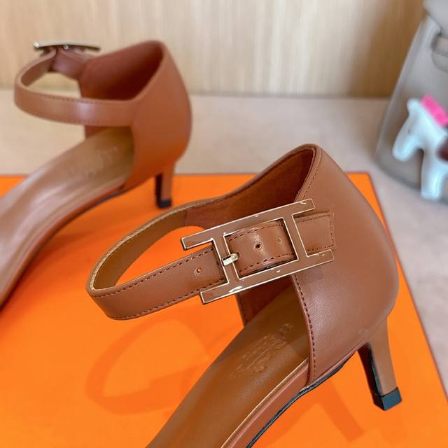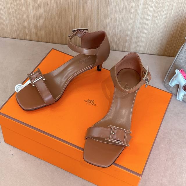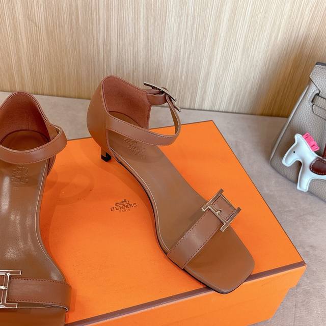 4.5Cm Picture Factory Price P Hermes Judy 105 High-Heeled Sandals Are Fashionable And Versatile. They Are Super Comfortable With Hapi Shoe Buckles. Every Detail Is Done To The Extreme. They Are Matched With The Same Color. The Iconic Pure Shoe Buckle Design Is Simple And Smooth To Create A Fashionable And Soft Shape. Original Calfskin Original 1:1 Exclusive Private Model Heel Original Leather Outsole