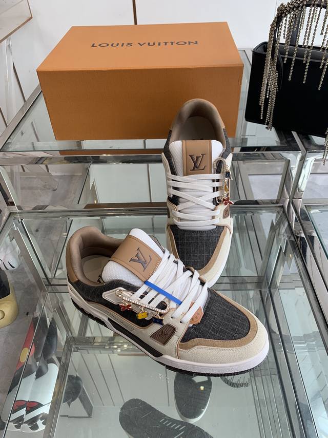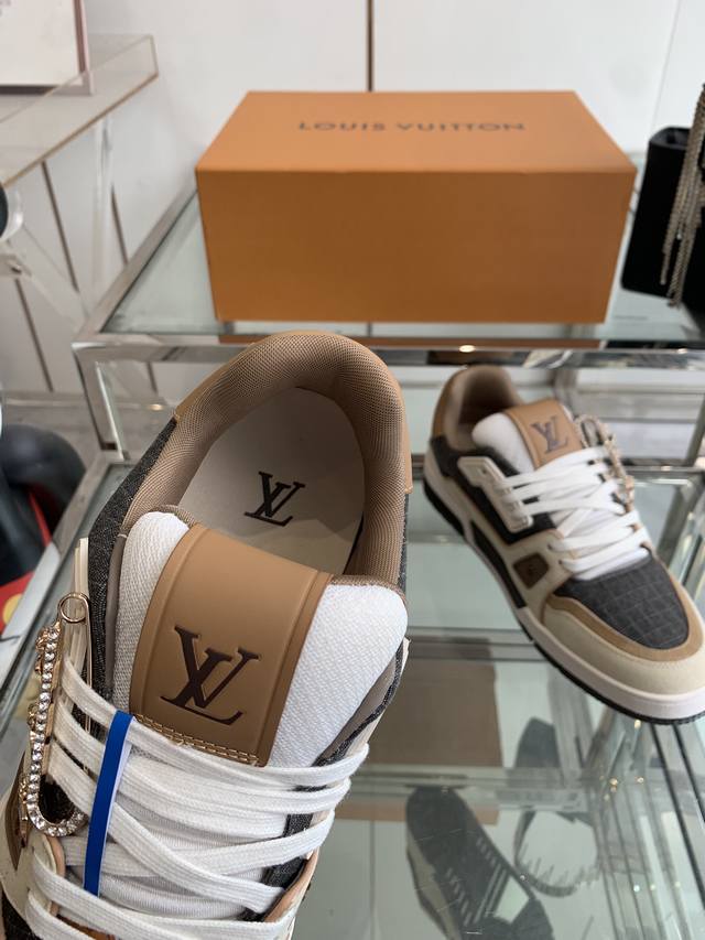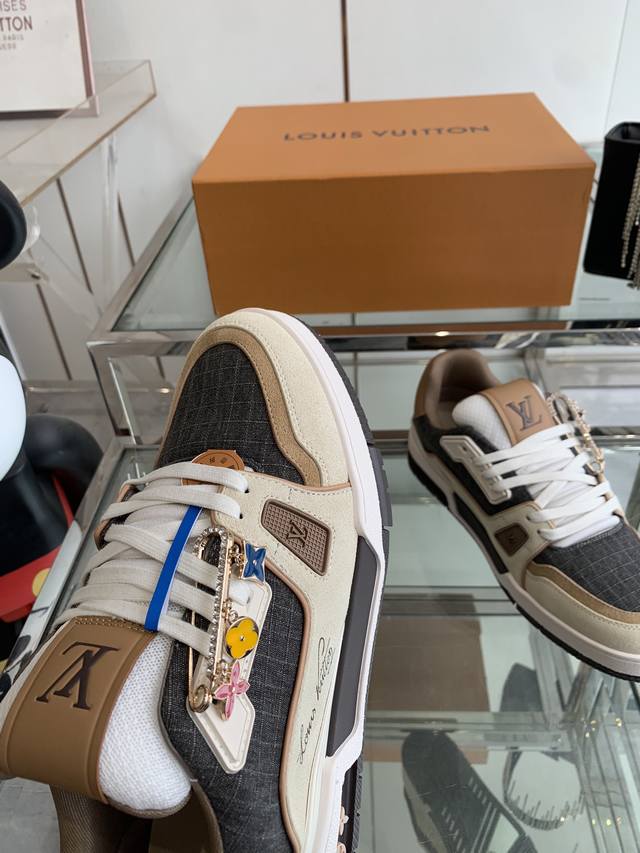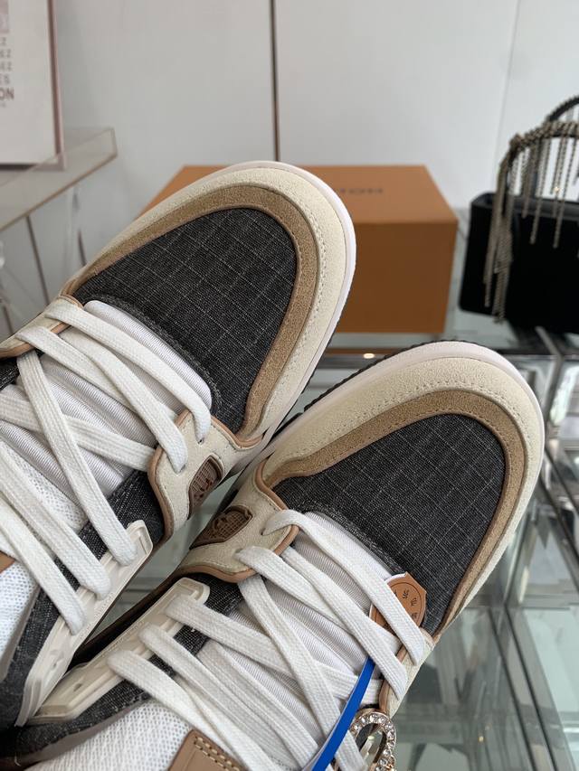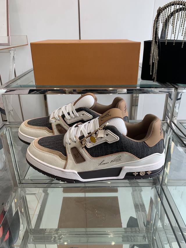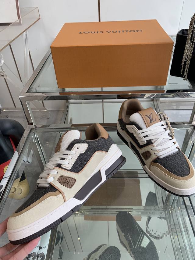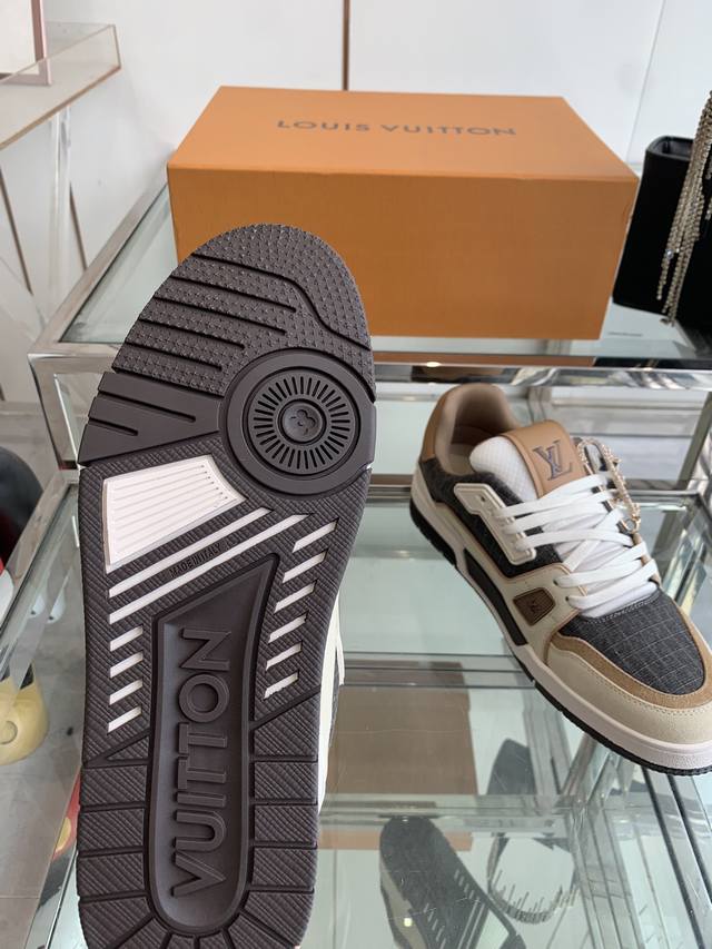 Original Purchase Development And Production This Lv Trainer Sneaker Uses Cowhide Leather To Shape The Complex Upper. It Takes Hours Of Craftsmanship To Complete The Classic Configuration. It Comes From The Hands Of Virgil Abloh And Shows The Inspiration Of Retro Basketball Shoes