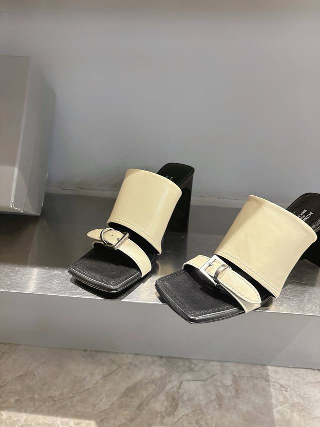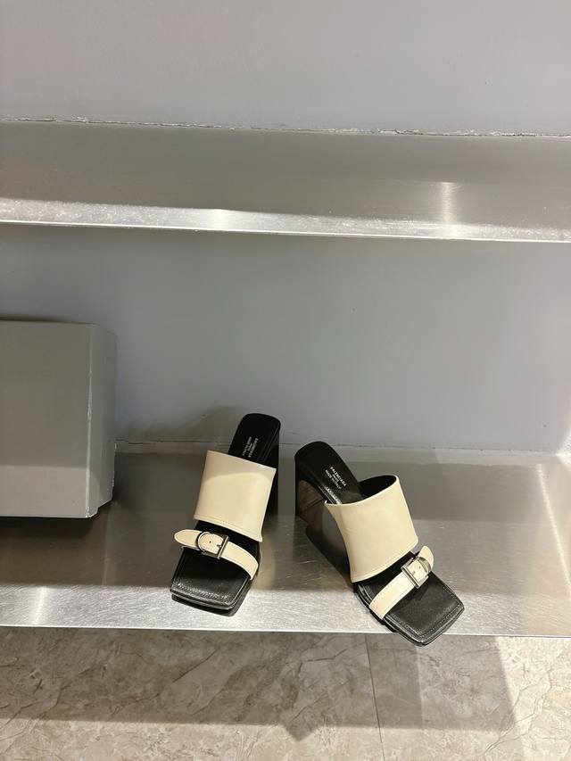 balenciaga Balenciaga Square-Toed Buckled High-Heeled Slippers
