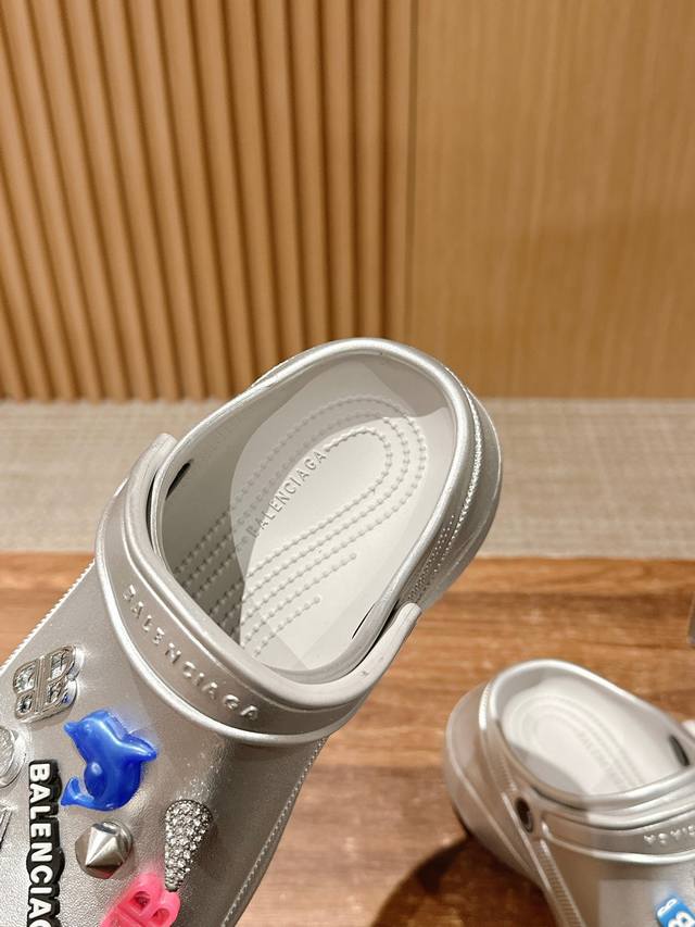 Balenciaga Co-Branded Crocs Couple Model #Crocs Mule Jibbitz Hole Shoes Heightening Thick-Soled Sandals Smart Crocs Fancy Diy Hole Slippers Cat Buckle Heart Buckle Are So Cute Cheating Heightening Artifact