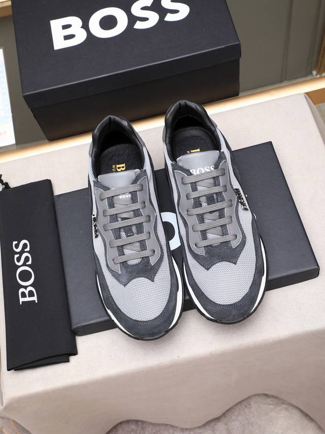 boss 2025 Latest Product, A Super Stylish Casual Shoe, Selected Top Layer Calfskin, Breathable Mesh Lining, Exquisite Craft Pattern Decoration On The Tongue, Metal Buckle On The Side, Iconic Logo, Domineering And Handsome On The Feet, Size 38-44 45, Custom Made, 4 Colors To Choose From