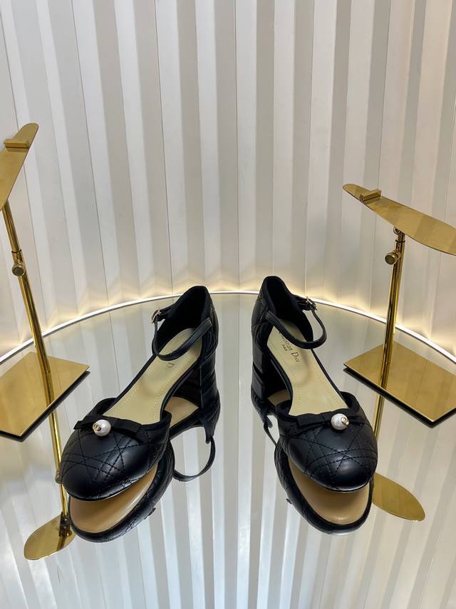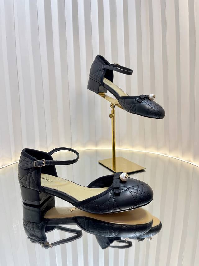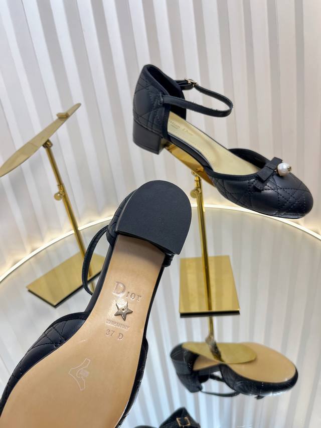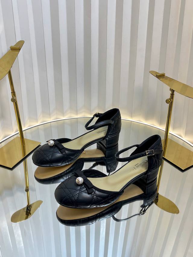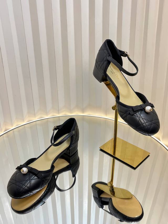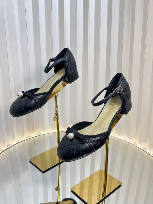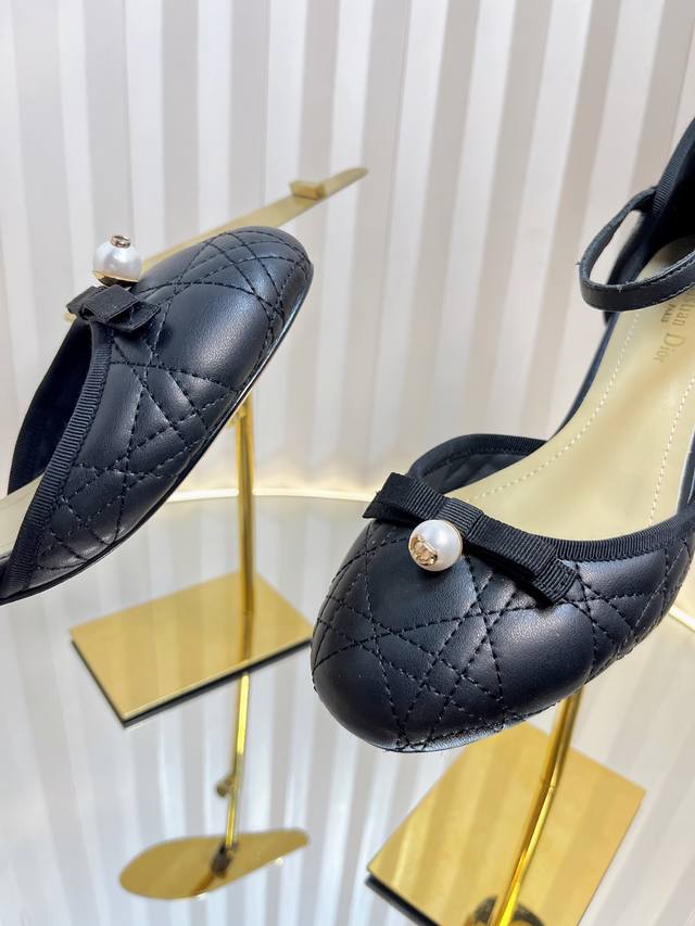Dior 2025 Spring And Summer Haute Couture Series New Ballet Iconic Electric Embroidery Raglan Low-Heeled Ballet Women's Shoes Cd Letter Logo Pearl Buckle Thick Heel Bowknot Sandals