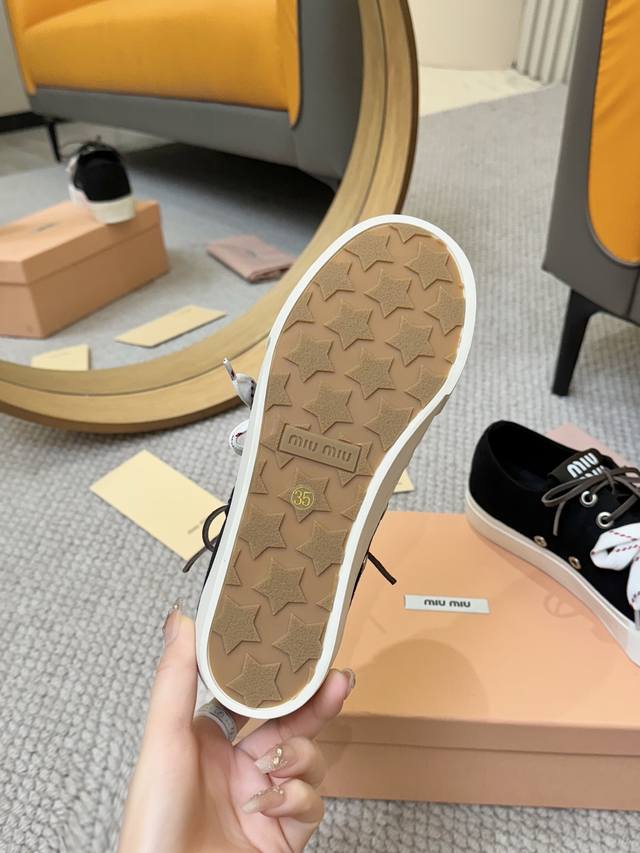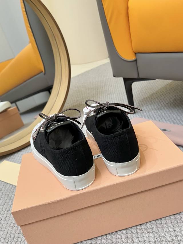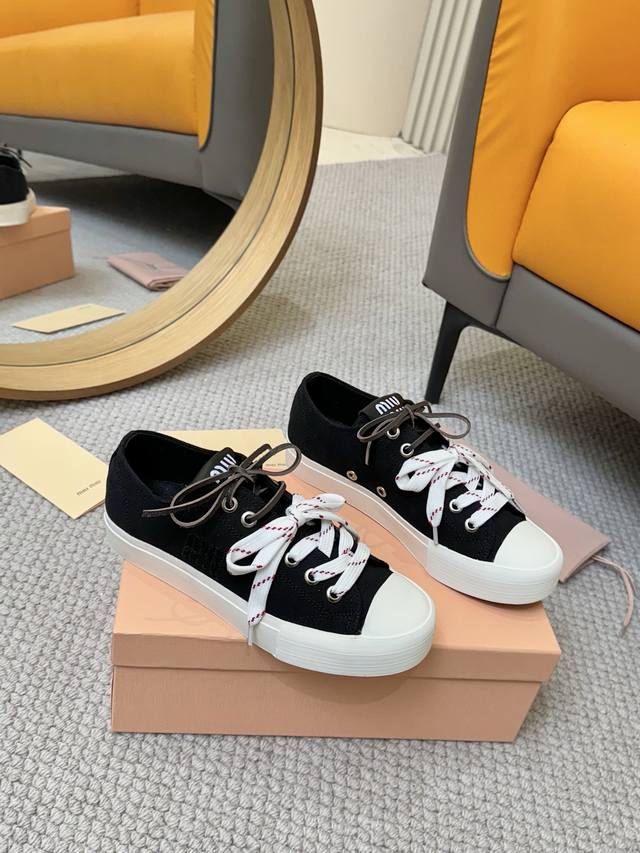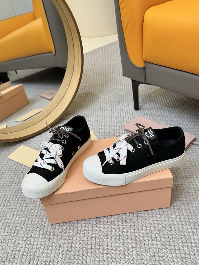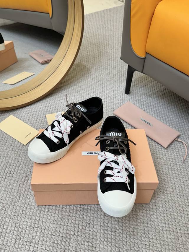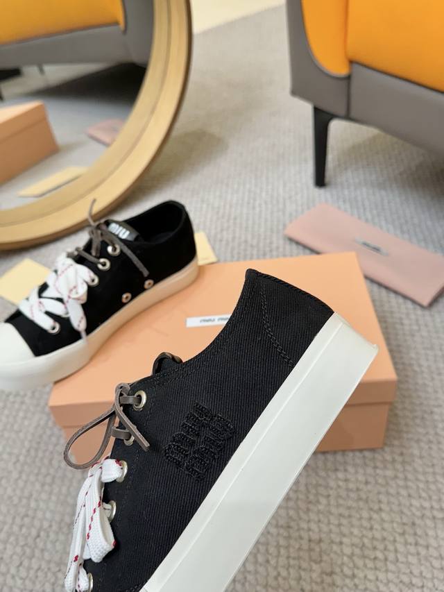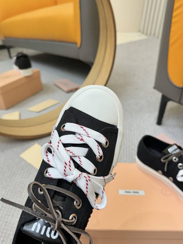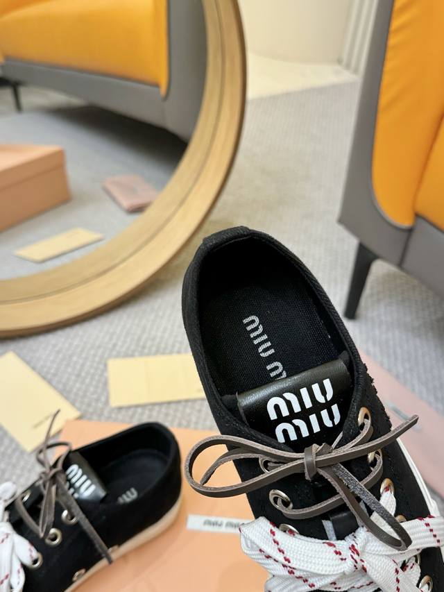 Miumiu Miu Miu 25 Spring And Summer New American Retro Style Biscuit Shoes Casual Canvas Shoes Double Shoelaces Cloth Shoes Leather Shoes
