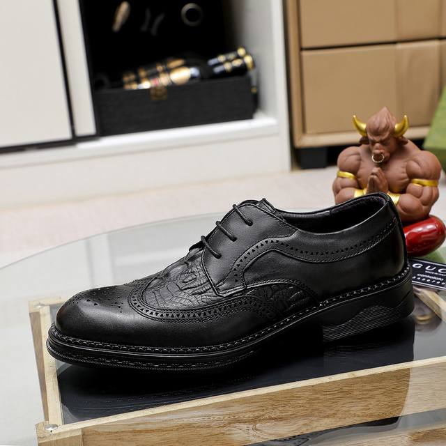 Factory P Price Gucci Gucci Official Website Men's Business Formal Leather Shoes Update Hong Kong Counter Synchronization New Style Completely One-To-One Replica Shipment Counter Quality Zero Difference 0 Exterior Are All Made Of Imported Cowhide With Original Hardware Buckle Leather Lining Color Matching Code 38-45