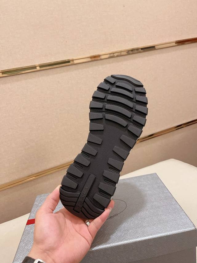 Factory P Price High Version New Prada Prada High Top Counter Simultaneous Launch New Men's Shoes Fabric Selection Waterproof Technology Cloth First Layer Cowhide Lining Original Mold Non-Slip Rubber Outsole Exquisite Lines Simple Atmosphere Comfortable To Wear And Good For Leisure Travel Size: 38 To 44 Can Be Customized 45.46.