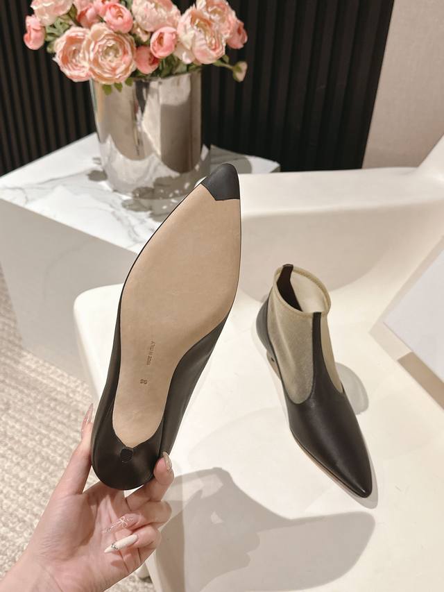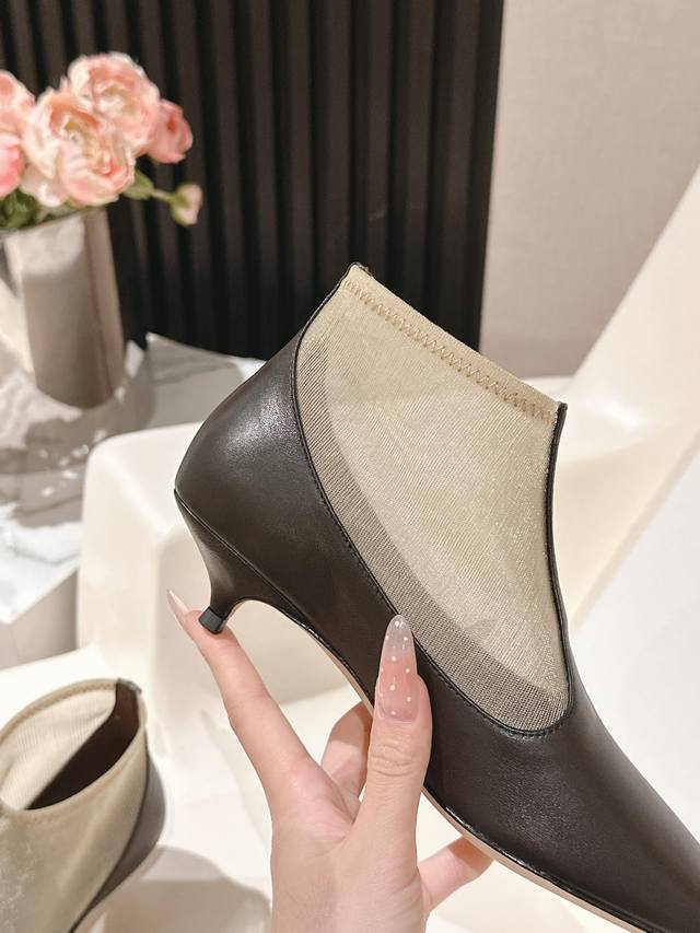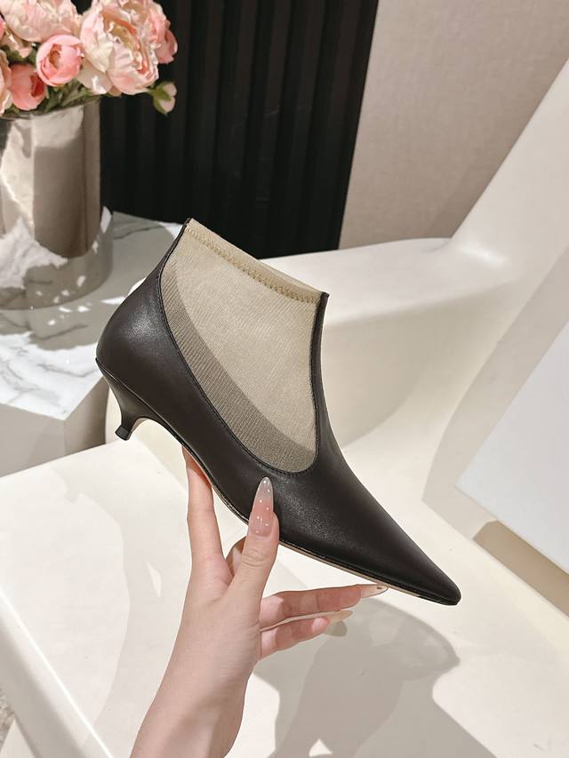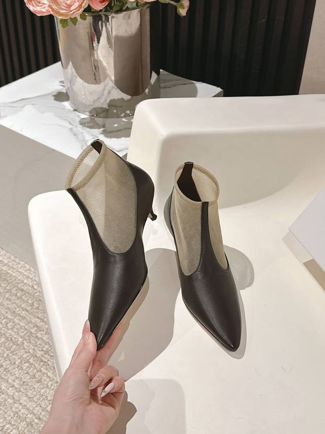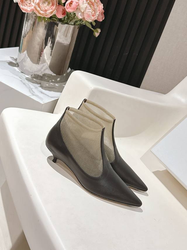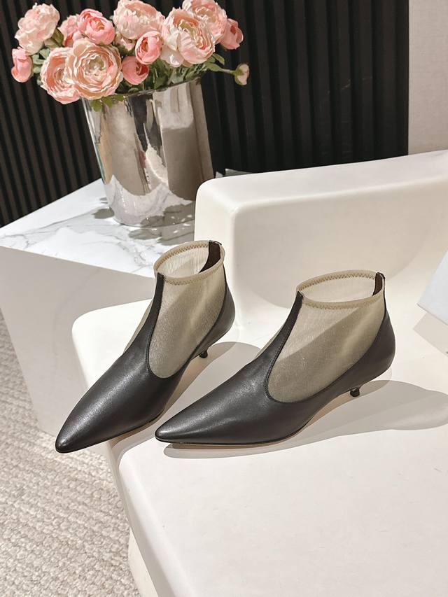 Factory Price P The Row25 Spring And Summer Mesh Small Pointed Toe Kitten Heel Boots Short Boots That Can Be Matched With All Seasons