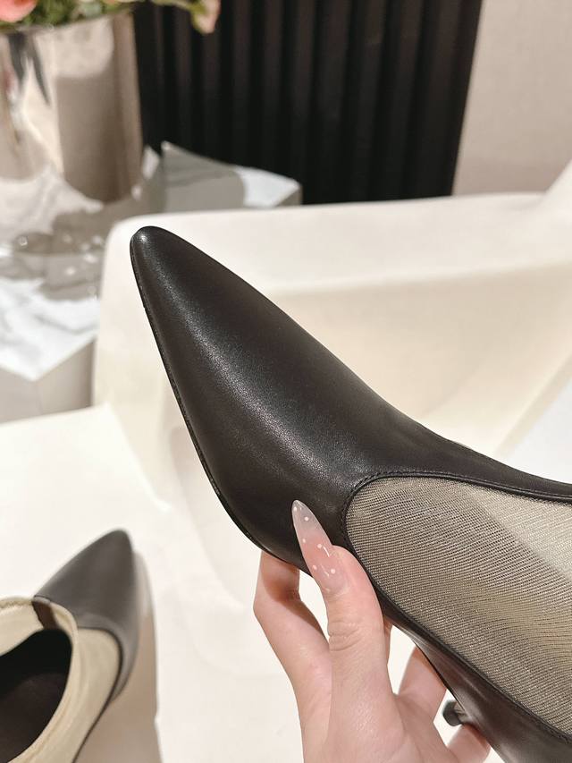 Factory Price P The Row25 Spring And Summer Mesh Small Pointed Toe Kitten Heel B