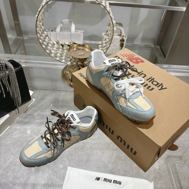 Original Purchase Development And Production Miu Miu X New Balance Classic Nb530 Sports Shoes Inspired By The Launch Of Its Own Iteration Version 530Sl This Sports Shoe Adopts A Deconstructed And Lightweight Design With Brown And Beige Color Matching With A Bit Of Old-Fashioned Fabric Covering The Outline Of New Balance 530. The Uneven Leather Tone Deliberately Worn Gives The Sneakers A Different Personality. This Joint Shoe Is Equipped With A Double Shoelace Design To Create A Casual Feeling Of Tying, Adding A Bit Of Boyish And Straightforwardness To The Overall Sense.
