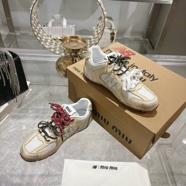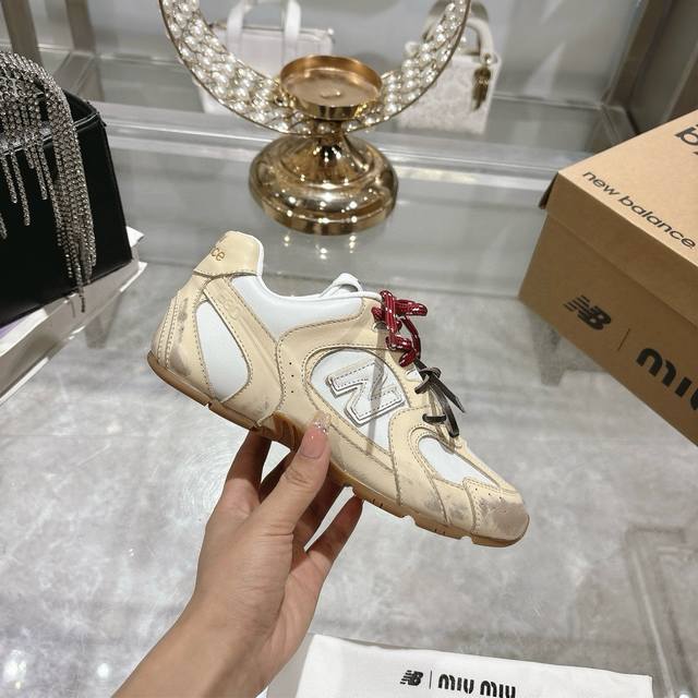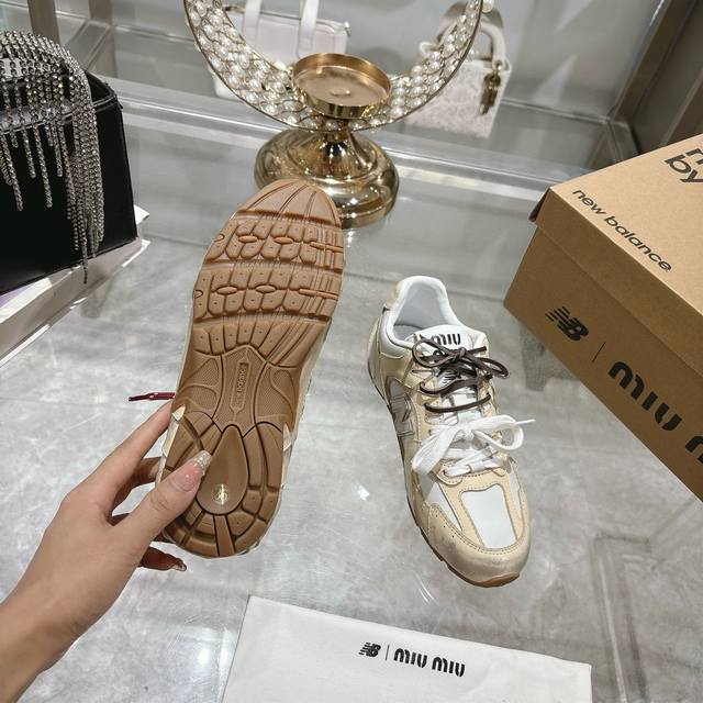 Original Purchase Development And Production Miu Miu X New Balance Classic Nb530 Sports Shoes Inspired By The Launch Of Its Own Iteration Version 530Sl This Sports Shoe Adopts A Deconstructed And Lightweight Design With Brown And Beige Color Matching With A Bit Of Old-Fashioned Fabric Covering The Outline Of New Balance 530. The Uneven Leather Tone Deliberately Worn Gives The Sneakers A Different Personality. This Joint Shoe Is Equipped With A Double Shoelace Design To Create A Casual Feeling Of Tying, Adding A Bit Of Boyish And Straightforwardness To The Overall Sense.