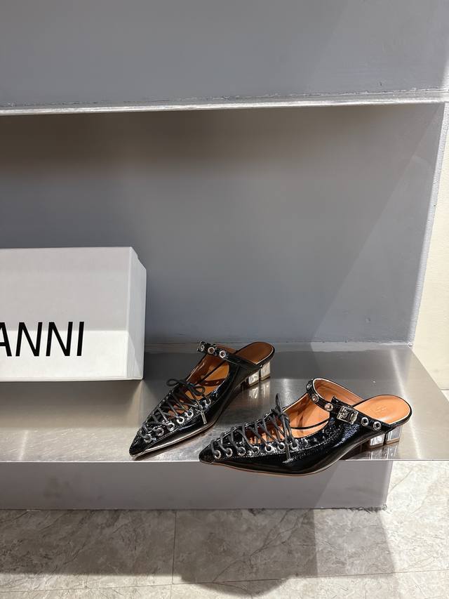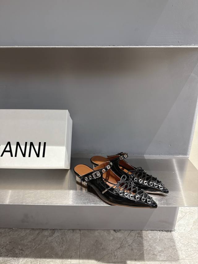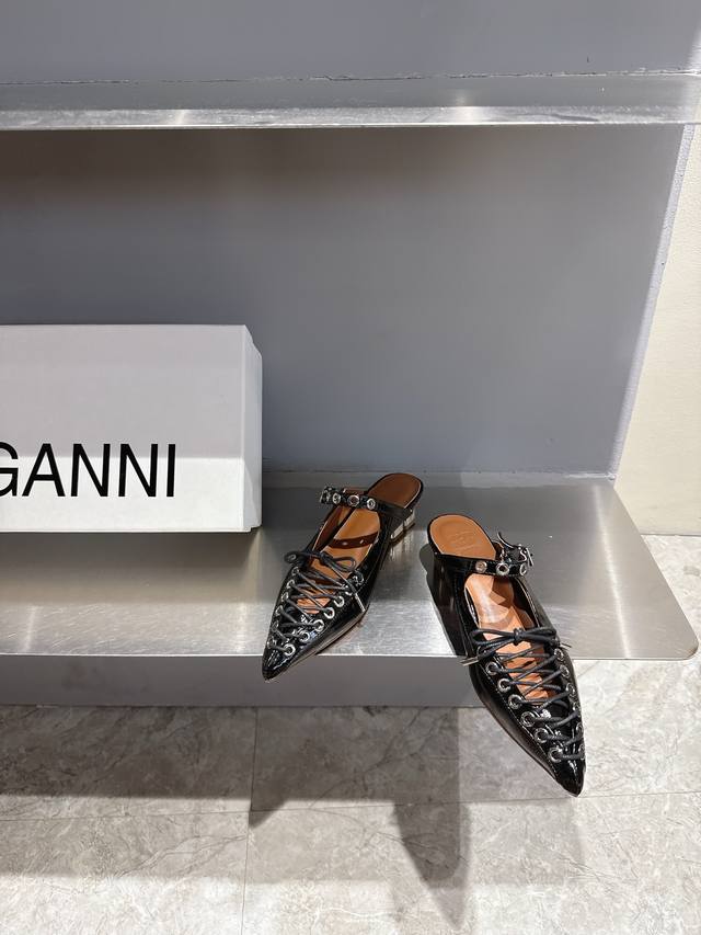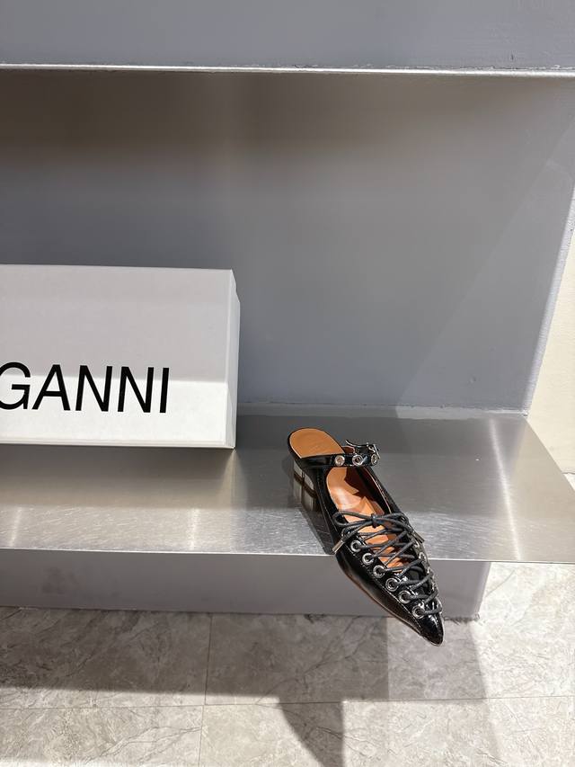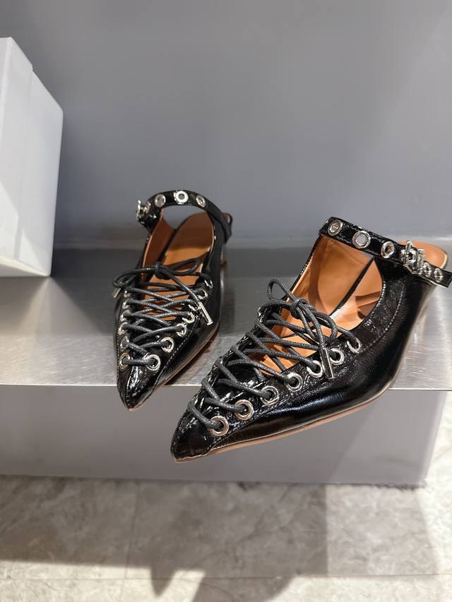 ganni Niche Fashion Brand 25Ss New Spring And Summer Lace-Up Ballet Shoes I F