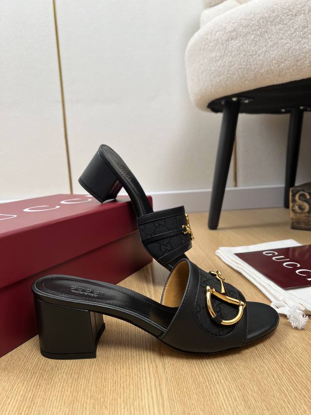 G's 2025 Spring And Summer New Products Counter Latest Catwalk Hit Horsebit Buckle Mid-Heel Slippers Series