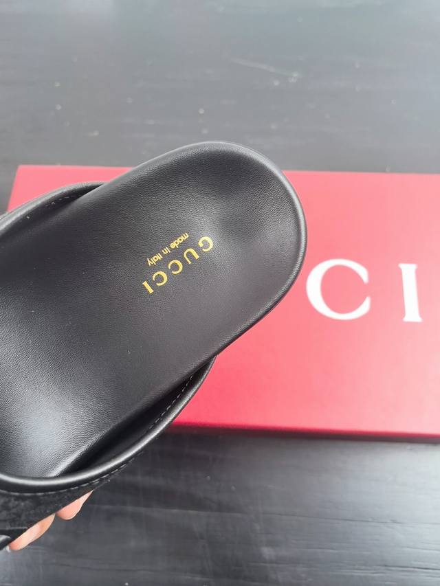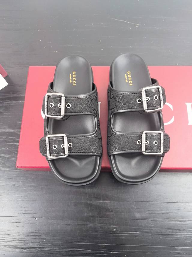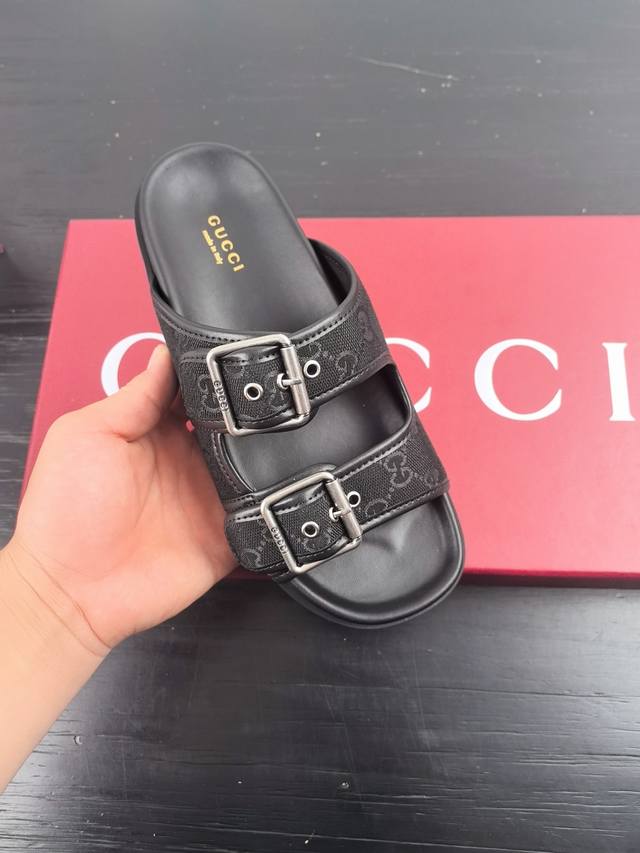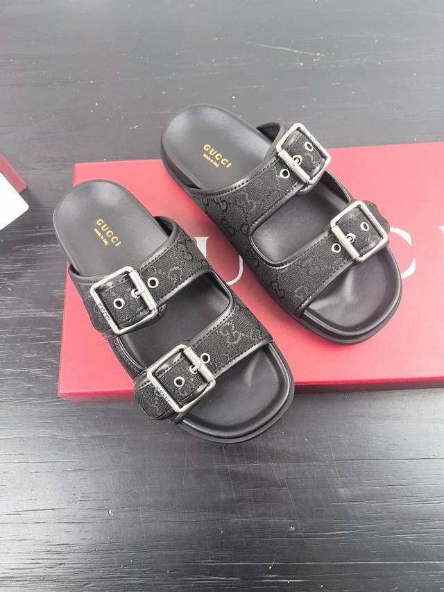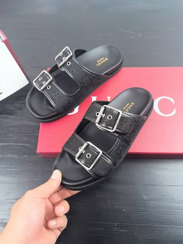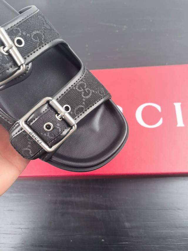 Gucci New Velcro Beach Slippers With Diamond G Buckle Leather Slippers, Versatile M Skirts And Pants, Internet Celebrities Can Wear Them With Different Color Socks, And They Are Also Very Fashionable