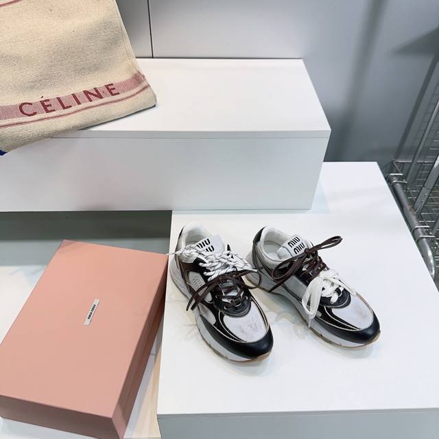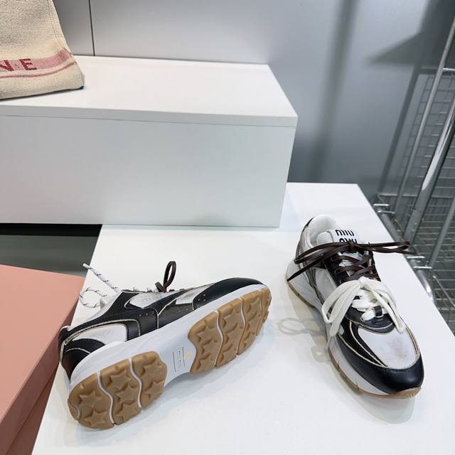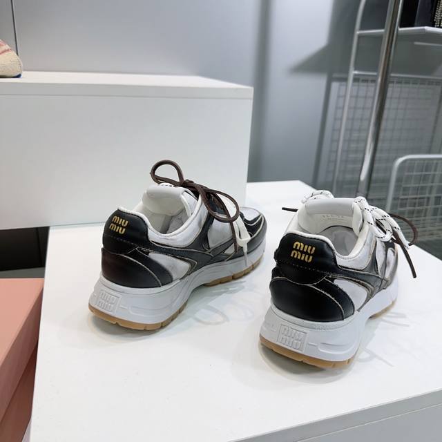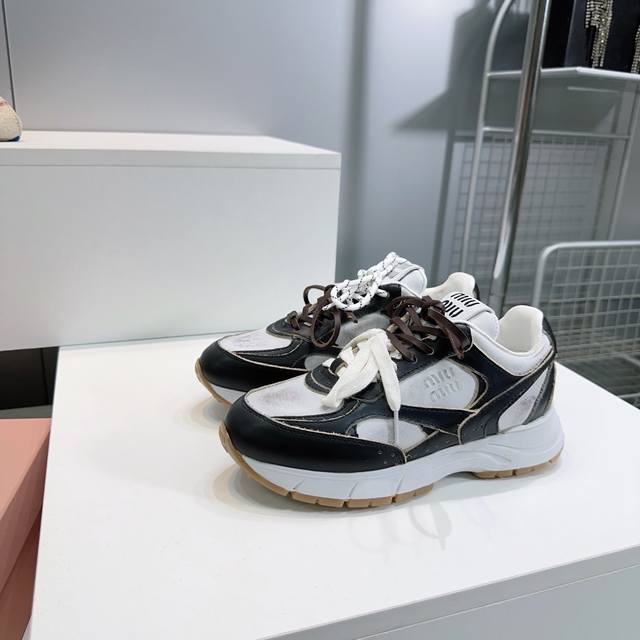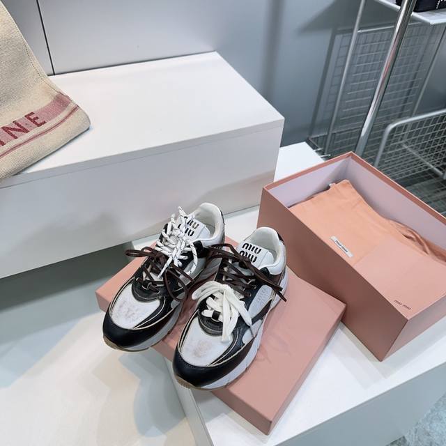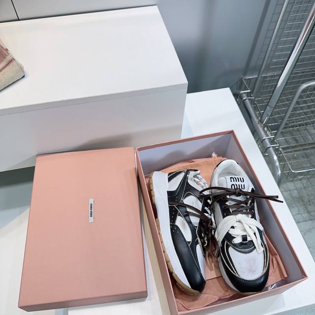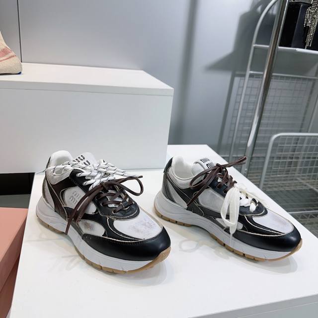 high Quality Factory Top Quality Miu Miu 25 Spring And Summer New Retro Color-Brushed Daddy Shoes Thick-Soled Casual Shoes