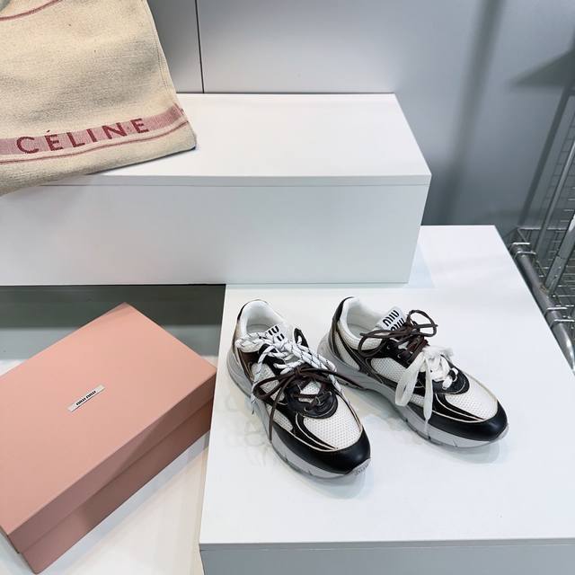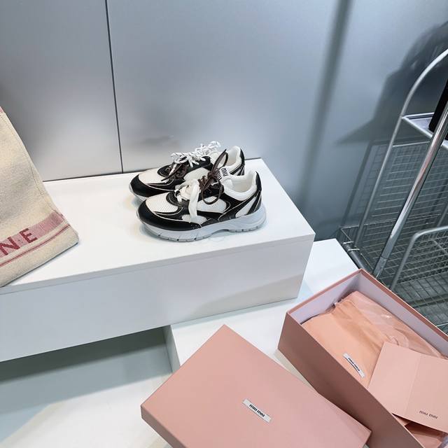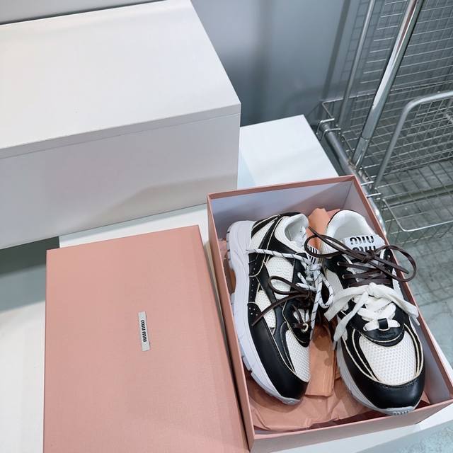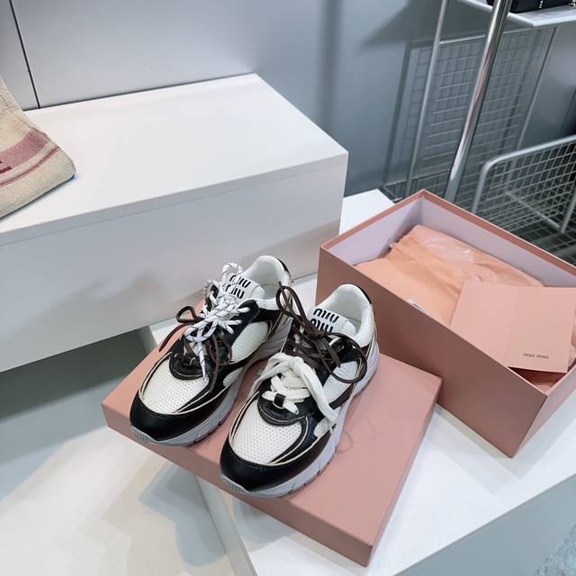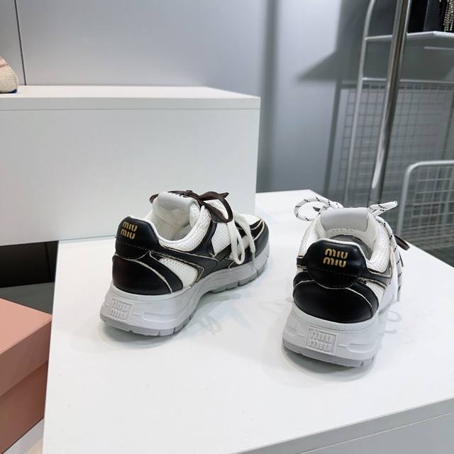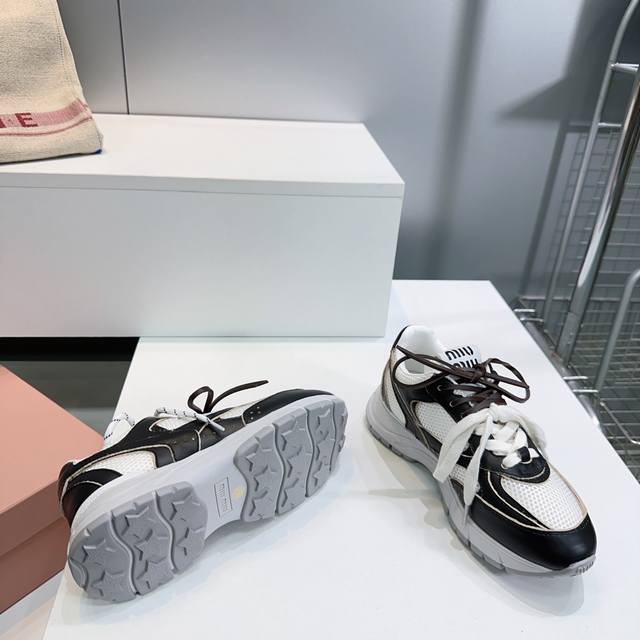 High Quality Factory Top Quality Miu Miu 25 Spring And Summer New Retro Color-Brushed Daddy Shoes Thick-Soled Casual Shoes