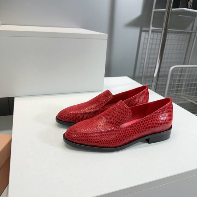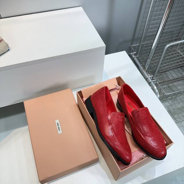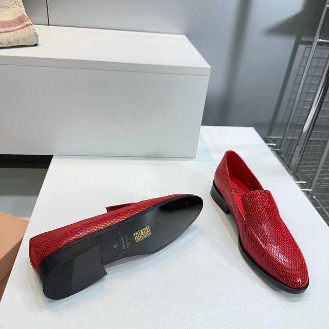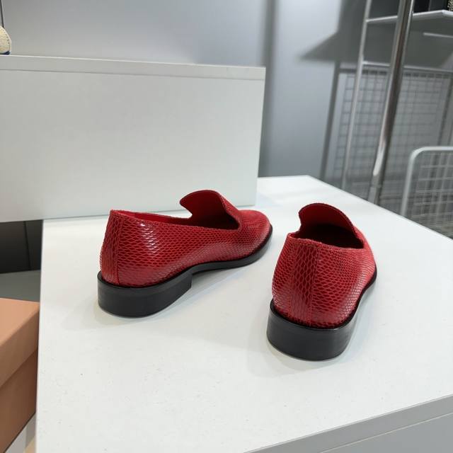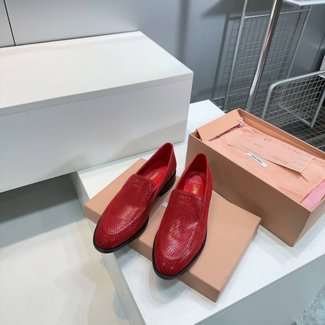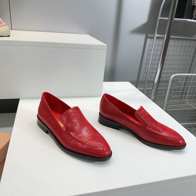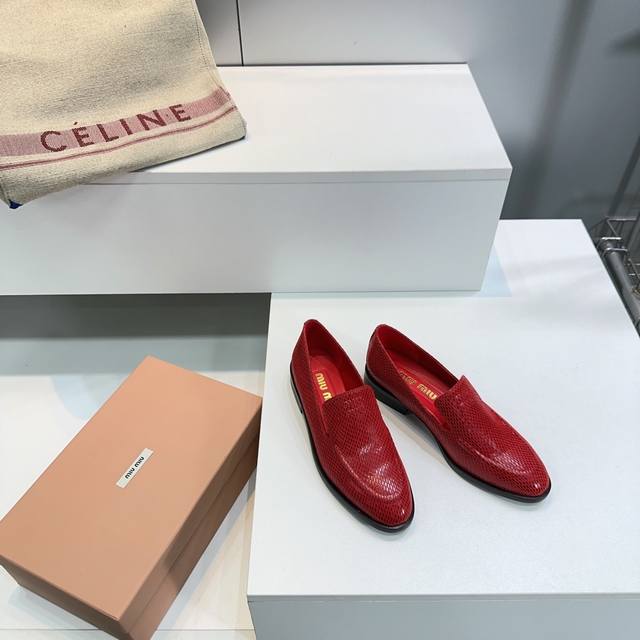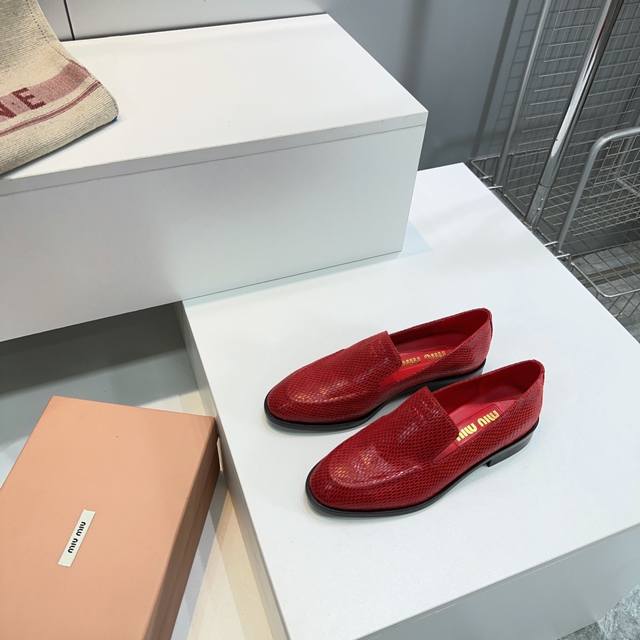 High Quality Factory Top Quality Miumiu Miu Miu 25 Spring And Summer New Simple Retro Flat Loafers Single Shoes Spring And Summer Fresh Color Matching Beautiful Curves Very Suitable For Daily Wear. The Upper Is Embossed With An Exclusive Logo Style, Showing Elegant Charm On The Feet