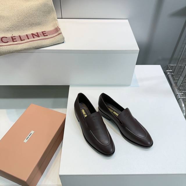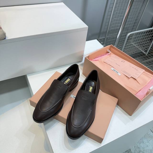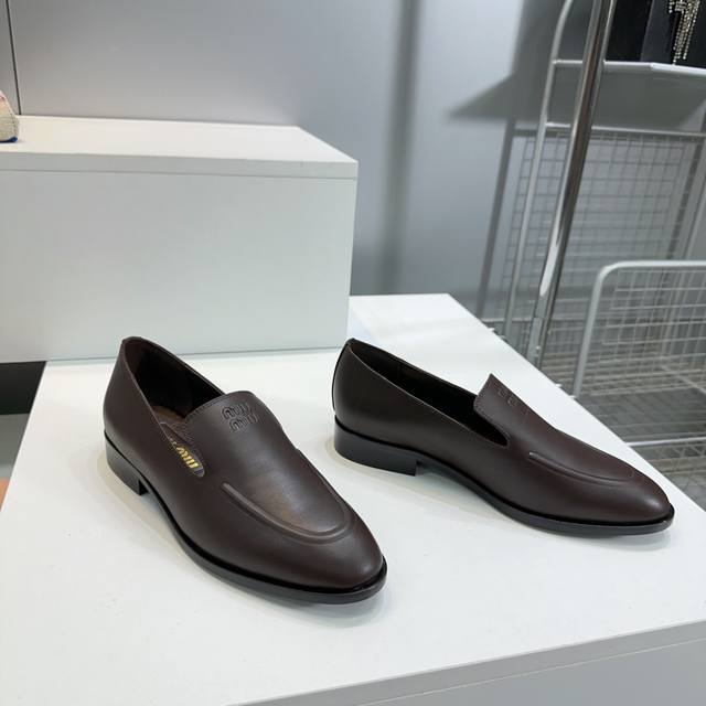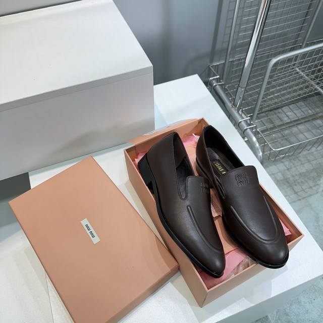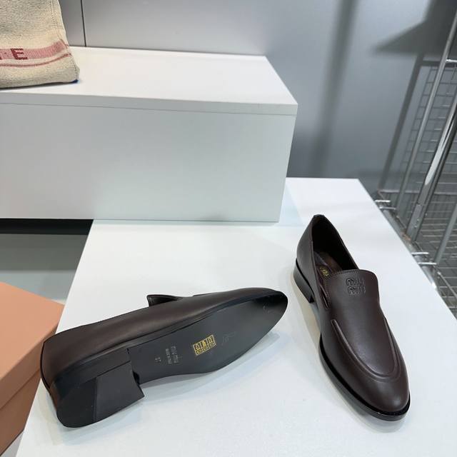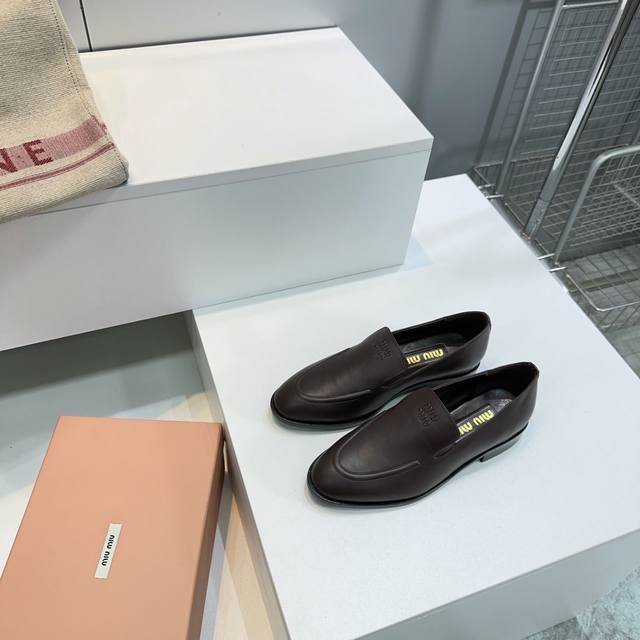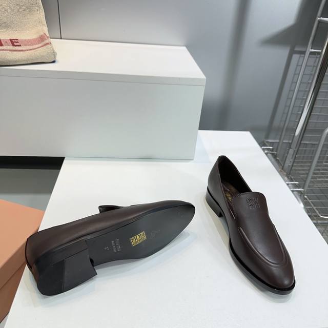 High Quality Factory Top Quality Miumiu Miu Miu 25 Spring And Summer New Simple Retro Flat Loafers Single Shoes Spring And Summer Fresh Color Matching Beautiful Curves Very Suitable For Daily Wear. The Upper Is Embossed With An Exclusive Logo Style, Showing Elegant Charm On The Feet