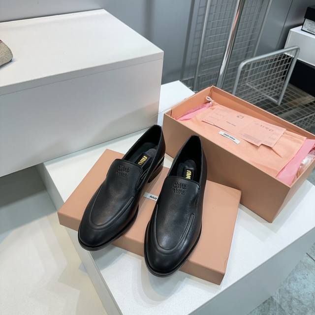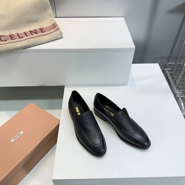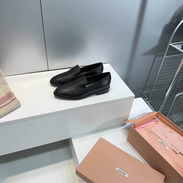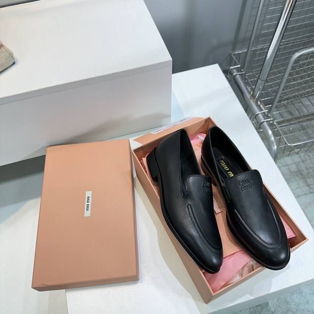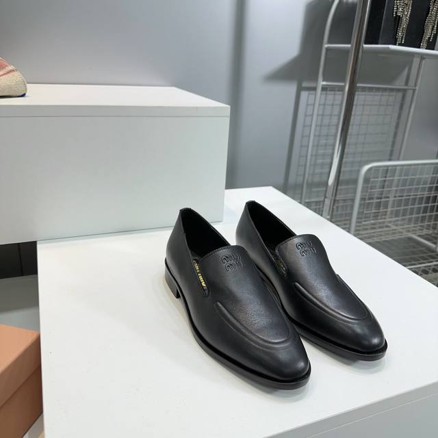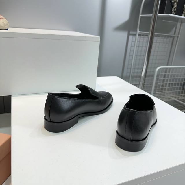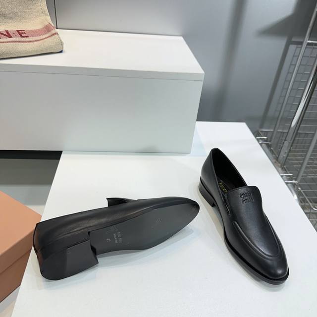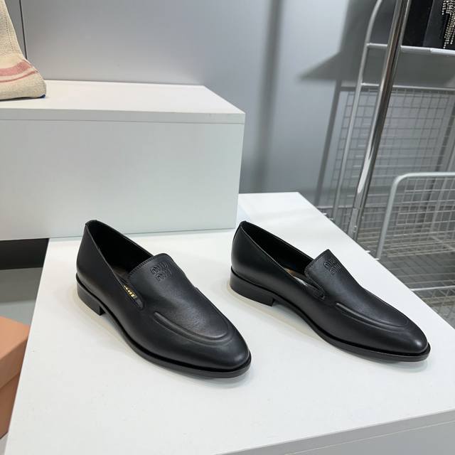 High Quality Factory Top Quality Miumiu Miu Miu 25 Spring And Summer New Simple Retro Flat Loafers Single Shoes Spring And Summer Fresh Color Matching Beautiful Curves Very Suitable For Daily Wear. The Upper Is Embossed With An Exclusive Logo Style, Showing Elegant Charm On The Feet