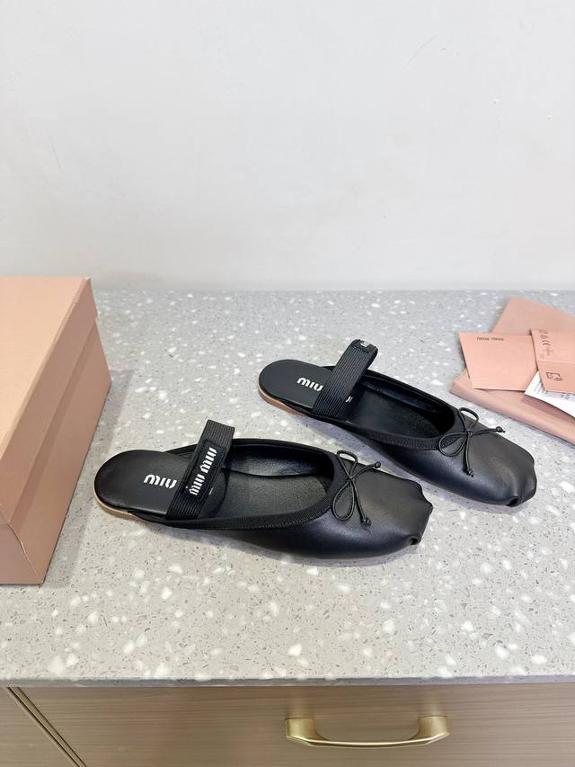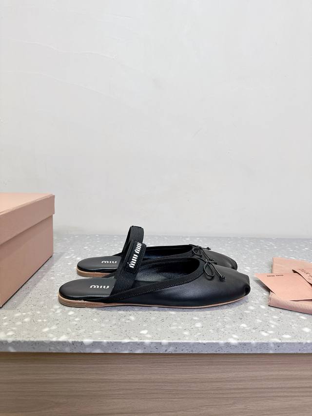 Leather Miu Miu 25Ss Spring And Summer New Ballet Half-Slippers