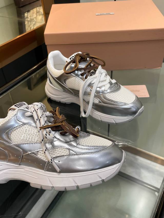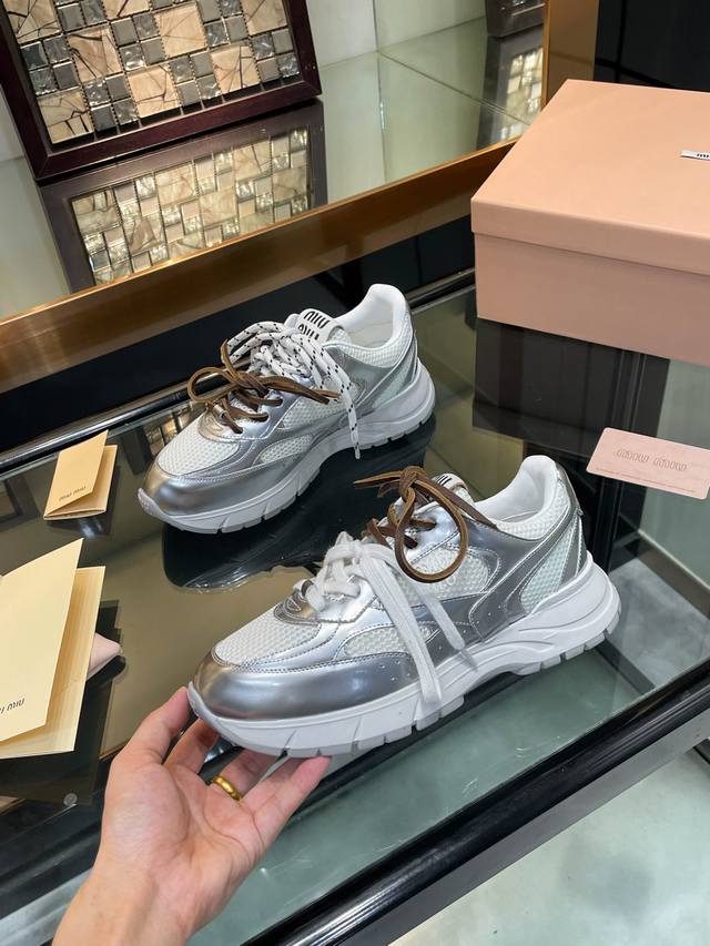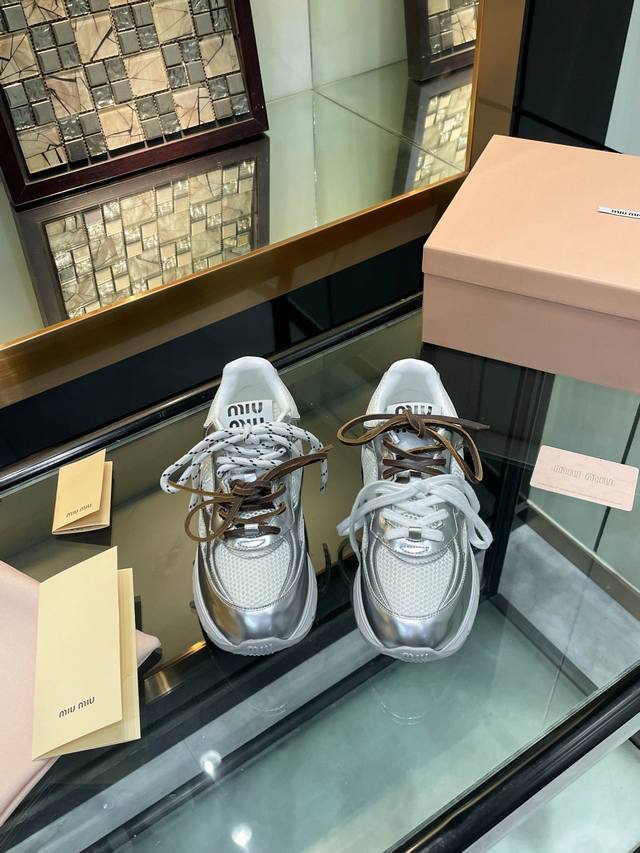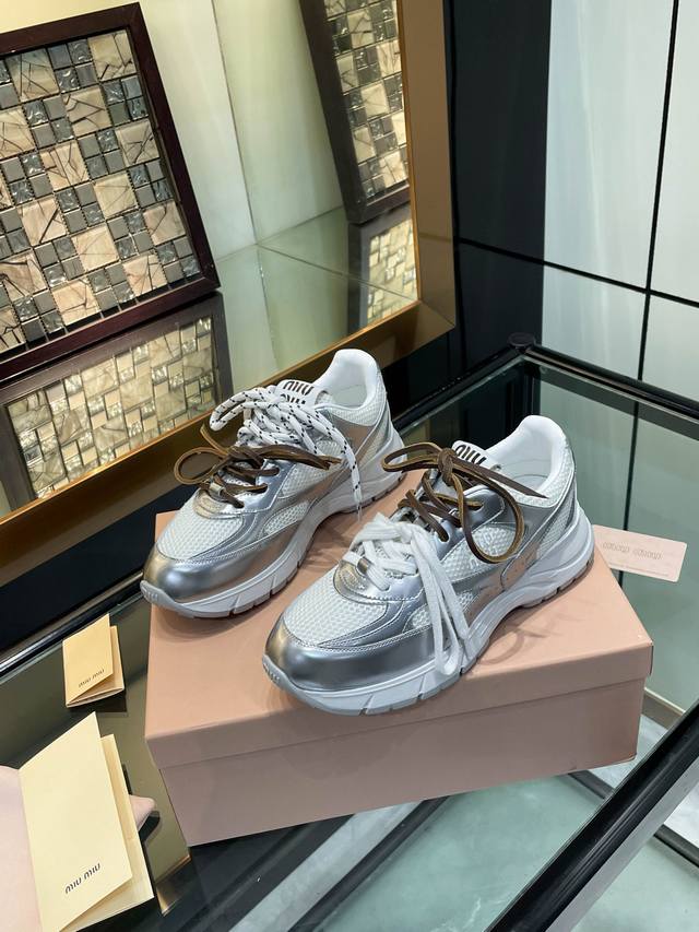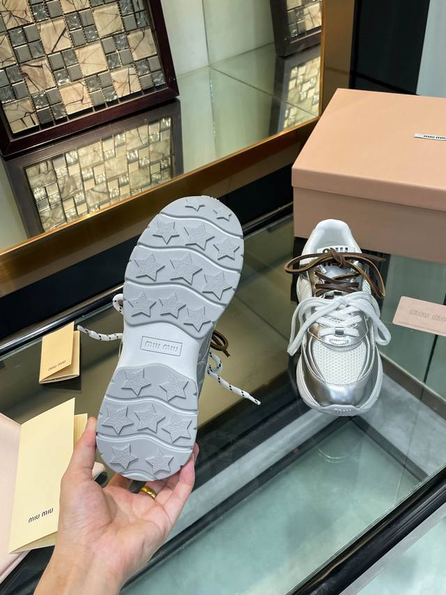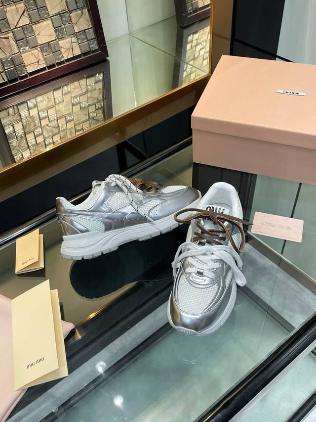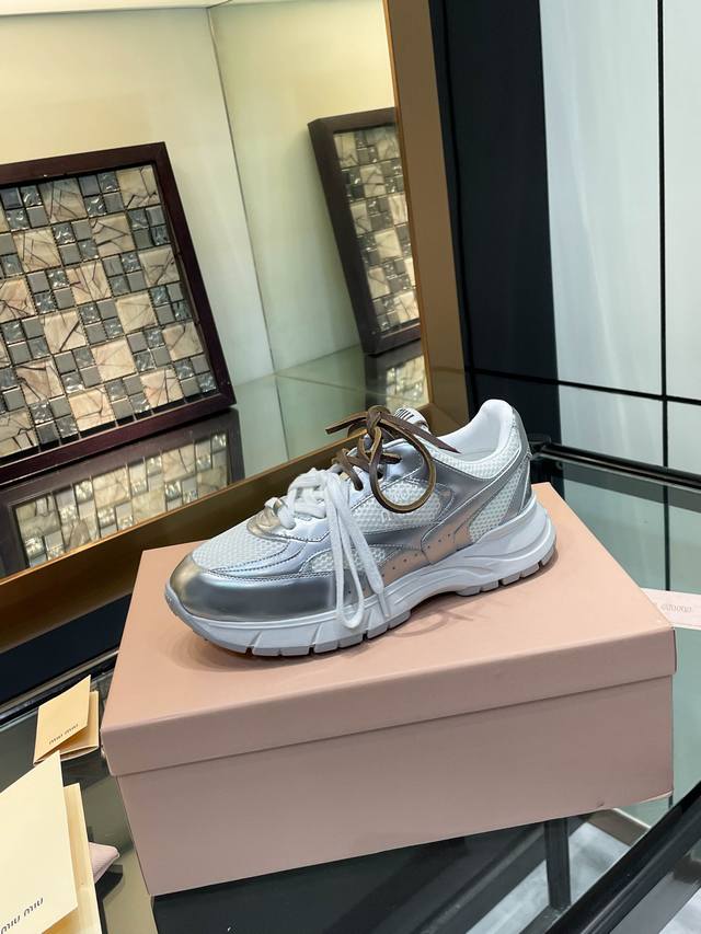 miumiu*Miu Miu 2025 Sports Casual Shoes. This Lace-Up Casual Sports Shoe Is A Perfect American Casual Style. It Is A Must-Have For Daily Wear. It Looks Super Good And Comfortable On The Feet. It Is A Classic And Versatile Item. Fabric: First Layer Of Cowhide. Original Tr Outsole. Size 35-40.