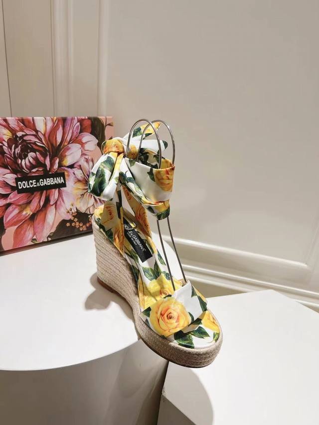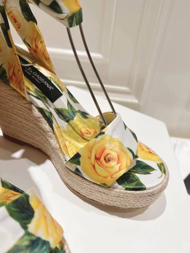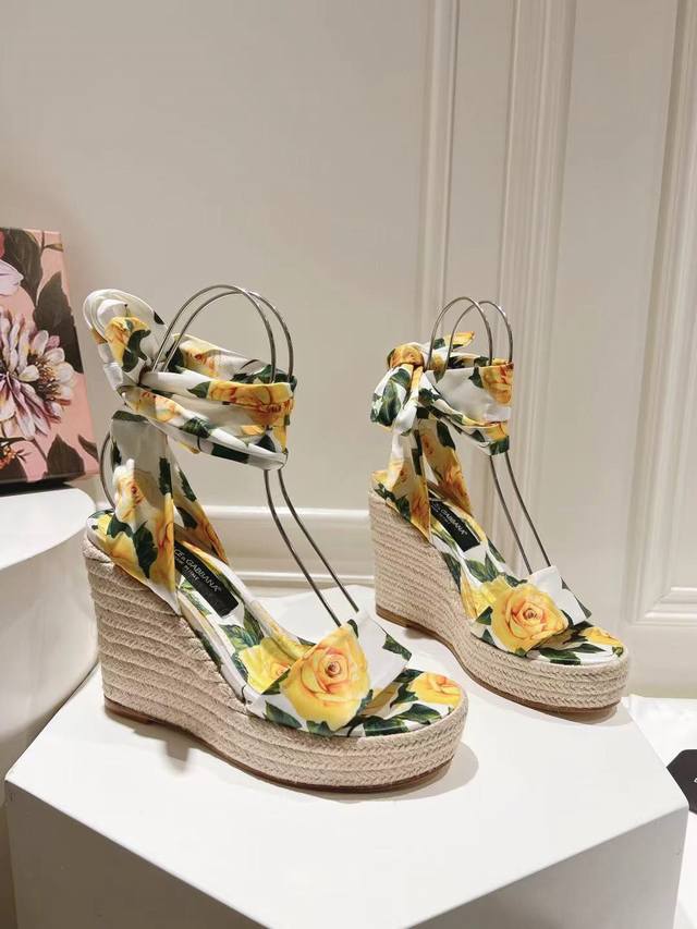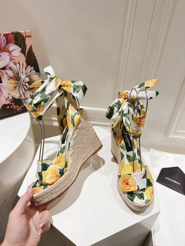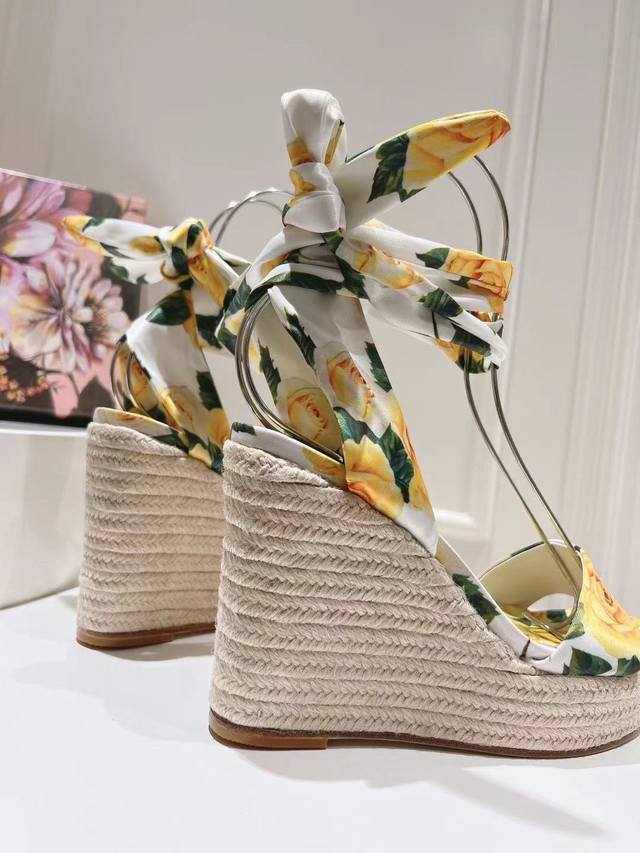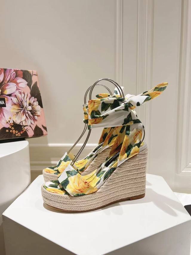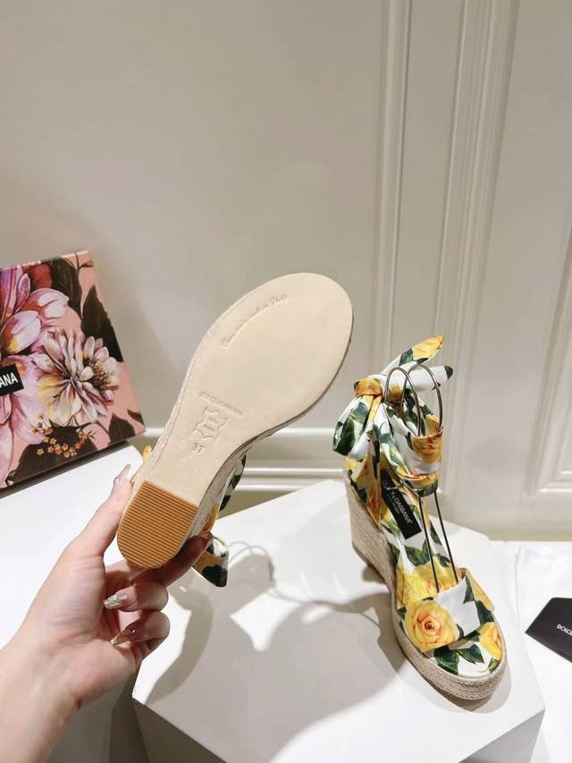 New 235-41 Size Genuine Leather Outsole Hemp Rope Embroidered Sandals Sheepskin Print Lining Pad Heel Height 10Cm