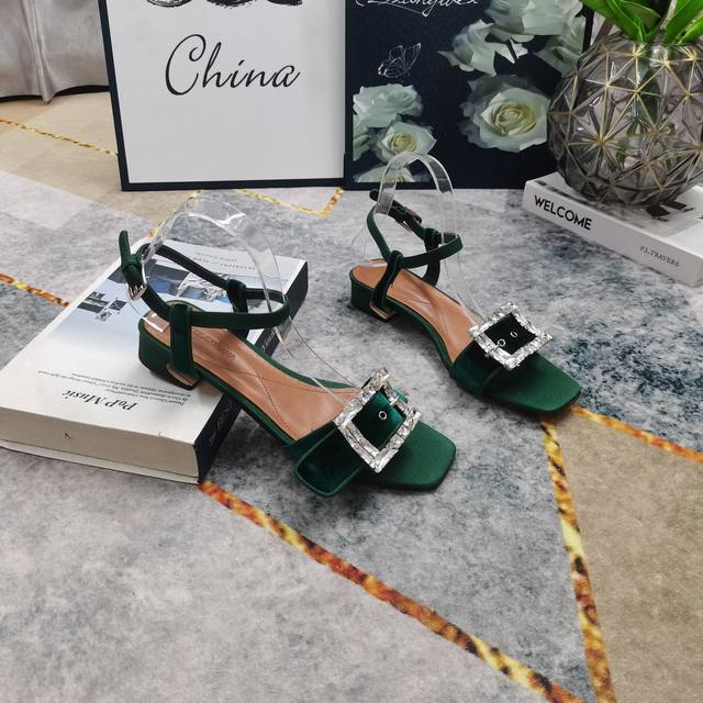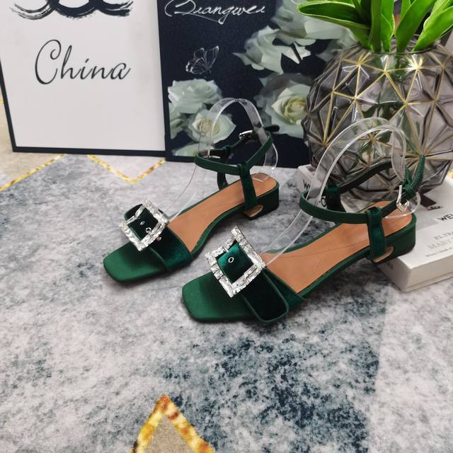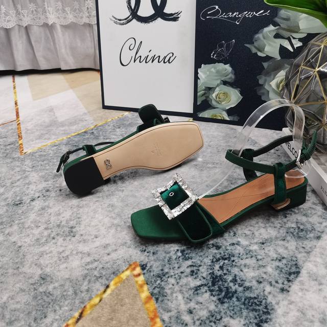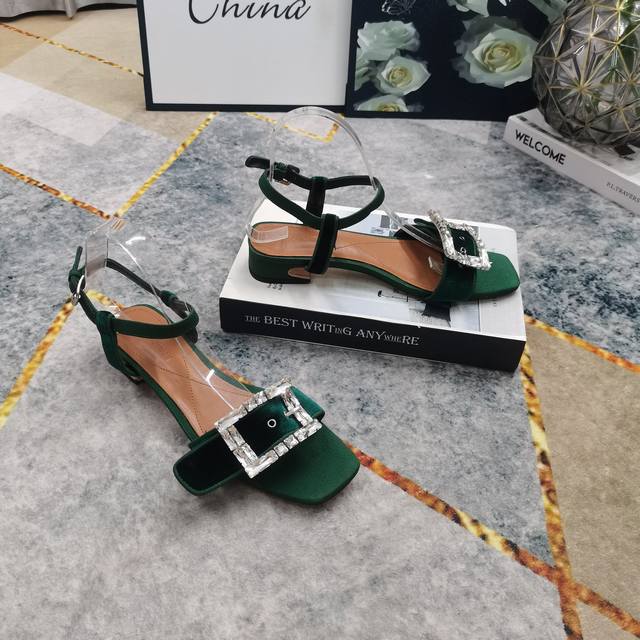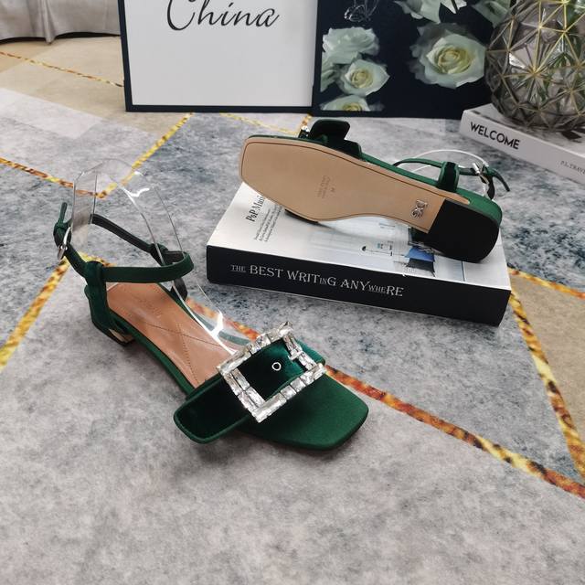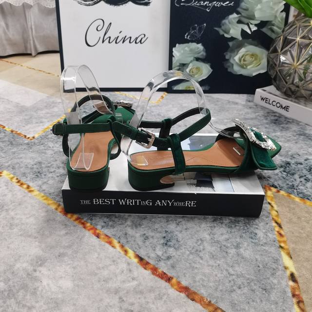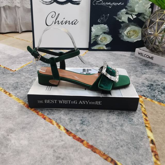 2025 New Rhinestone Buckle Decorated Suede Flat Sandals