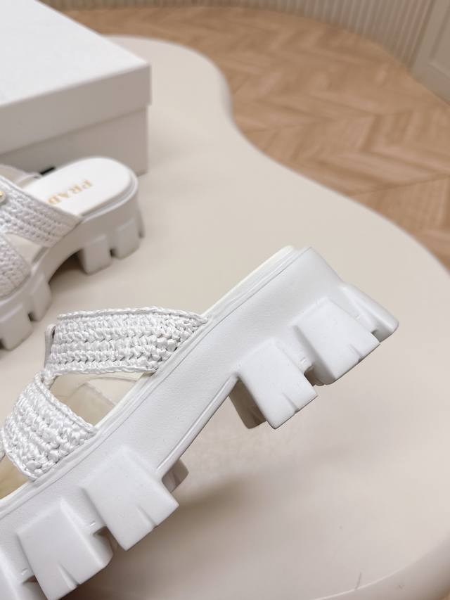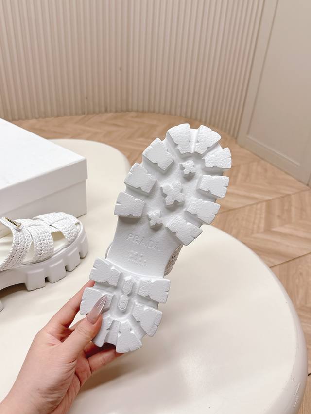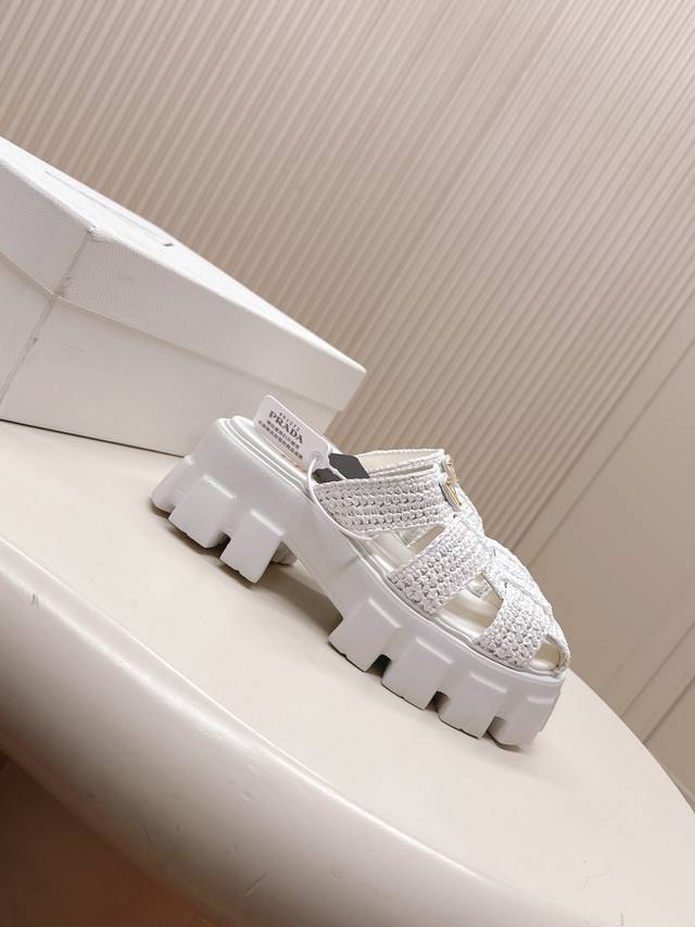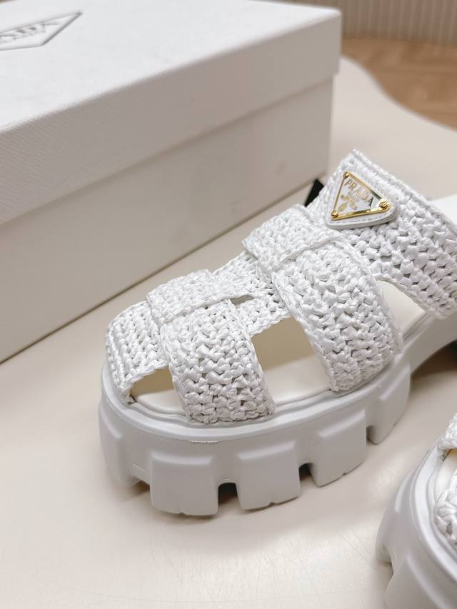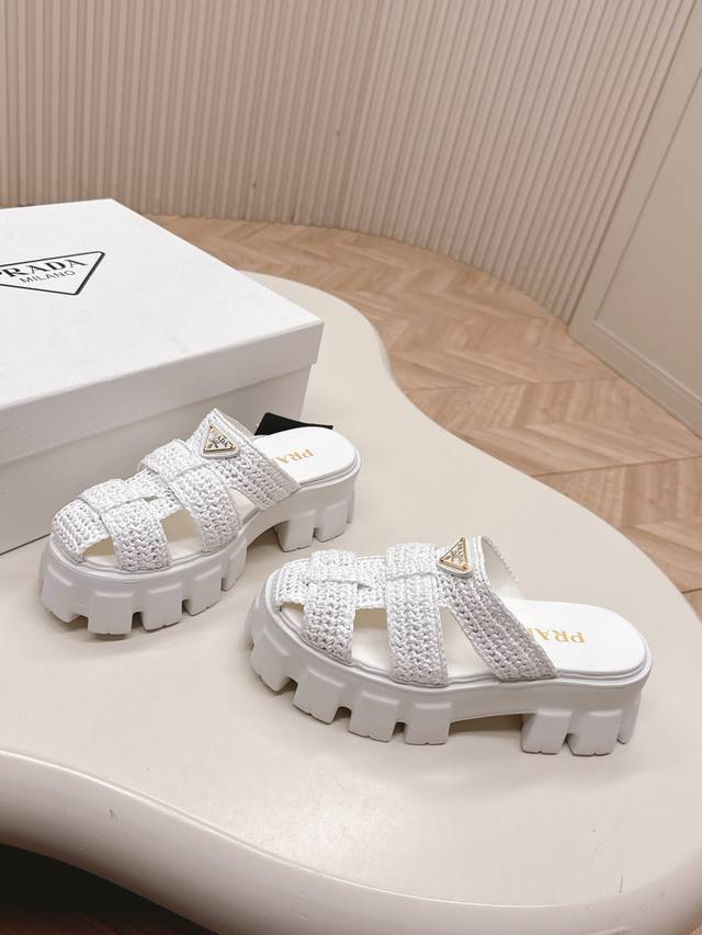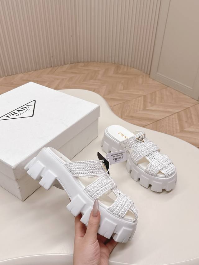 Original Factory Environmentally Friendly Pp Paper Material High Version Prada Prada's Latest Pig Cage Shoes Roman Woven Thick-Soled Rubber Slippers Latest Environmentally Friendly Pp Material Price P High Full Handmade Crochet Like Knitting A Sweater Slow Work Retro And Fashionable Avant-Garde Thick-Soled Sole With Rubber Upper Retro Wood Grain To Meet The Various Choices Of Fashionable People With Different Styles