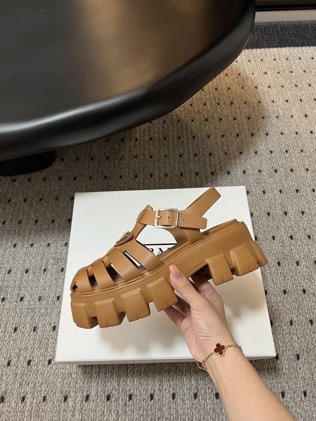 Super Popular Prad* Prada's Latest Spring And Summer Sawtooth Roman Woven Ultra-Light Thick-Soled Sandals Retro And Fashionable Avant-Garde Gear Teeth Make The Whole Pair Of Shoes Light And Comfortable Bright Colors Meet The Various Choices Of Fashionable People With Different Styles