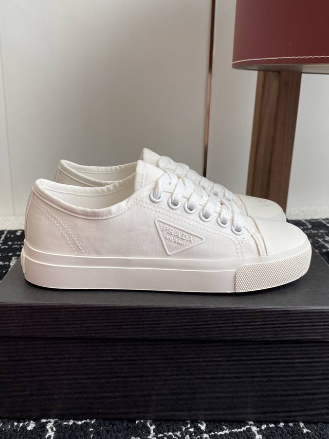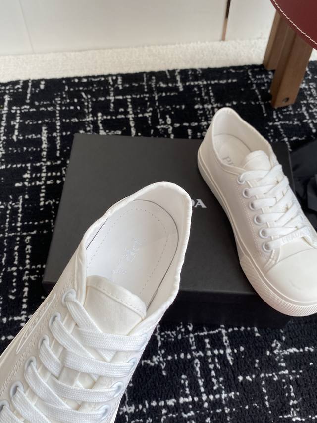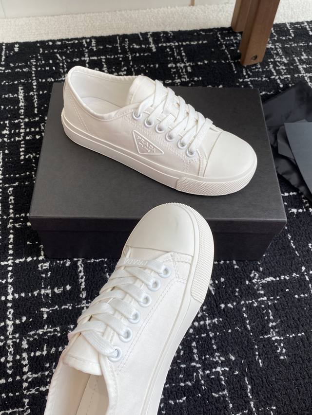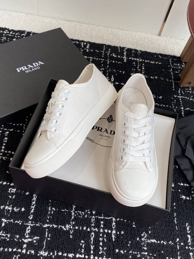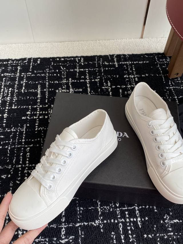 Prada 25Ss Spring And Summer New Round-Toed Canvas Shoes