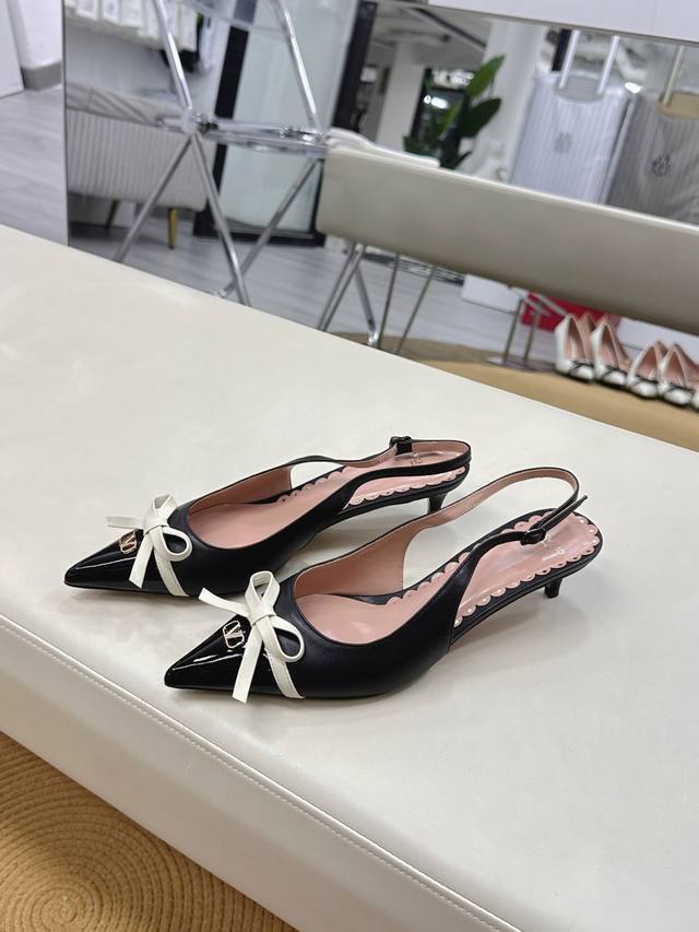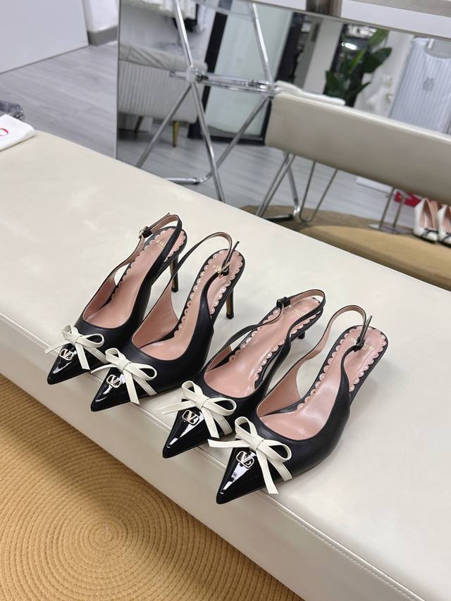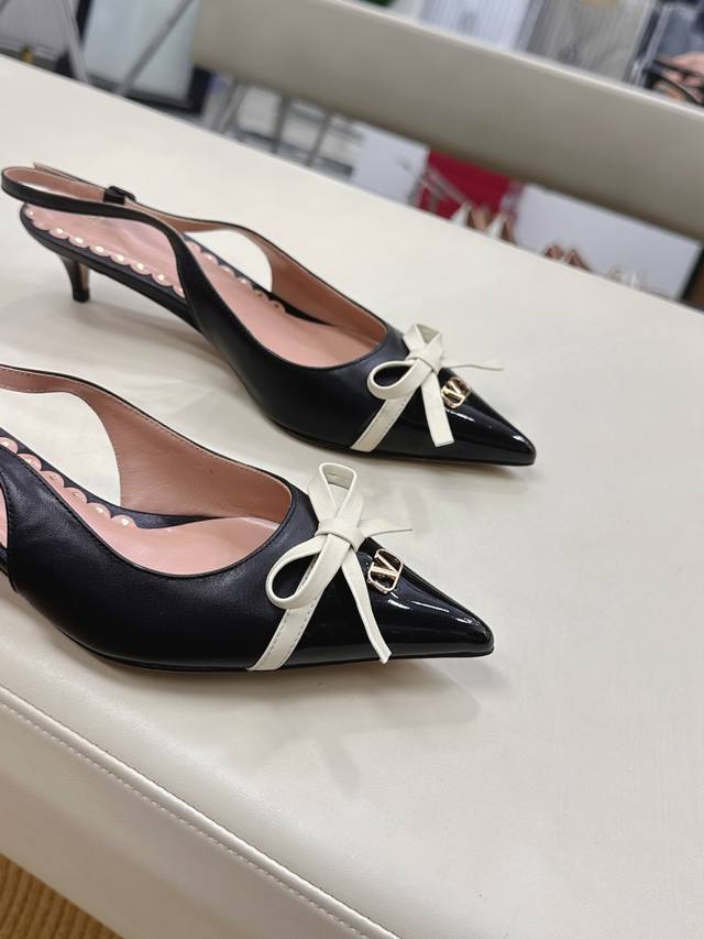 Latest V Logo Signal Small V Buckle Bow Stitching Design High Heels