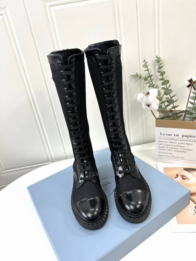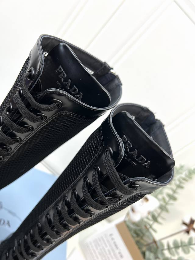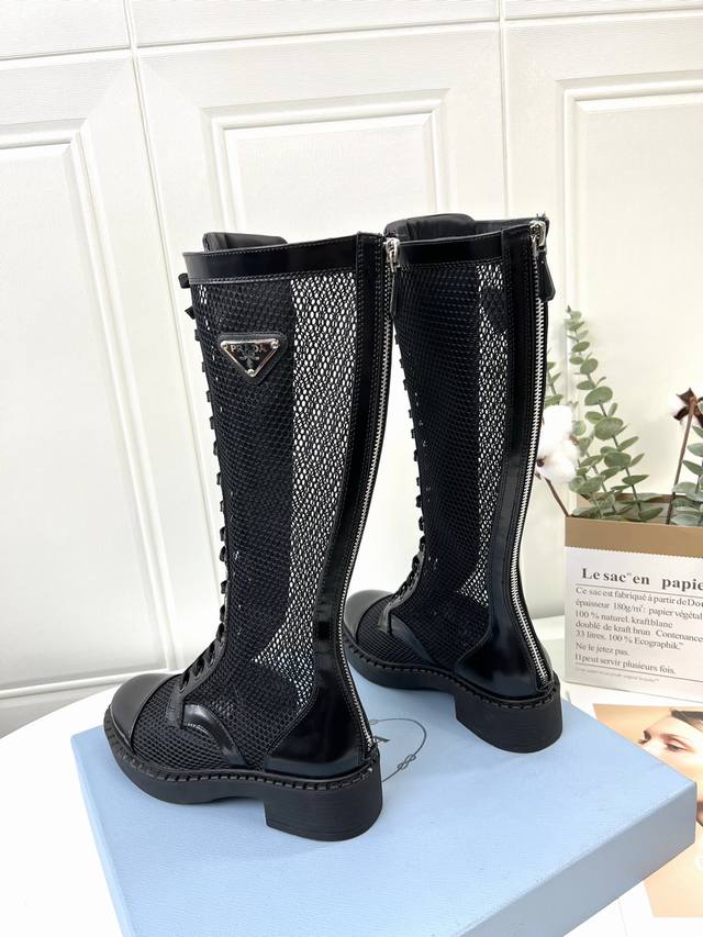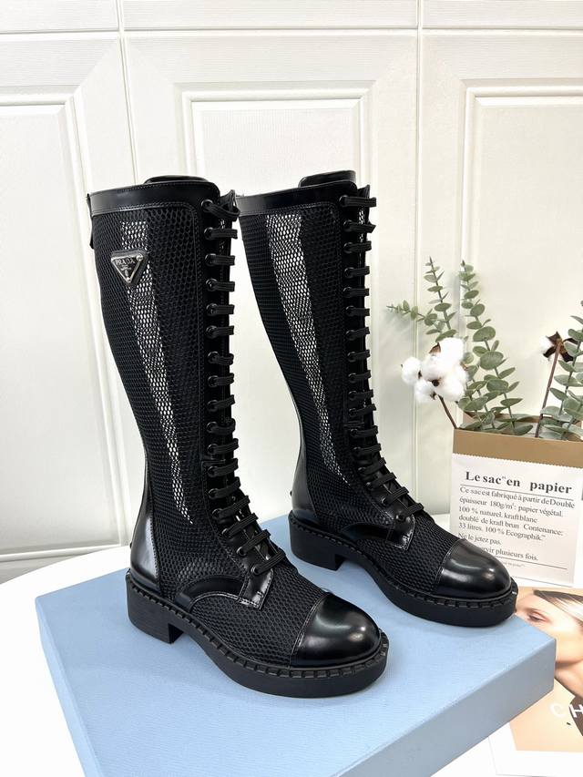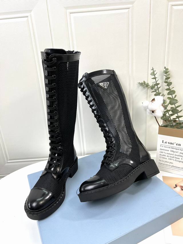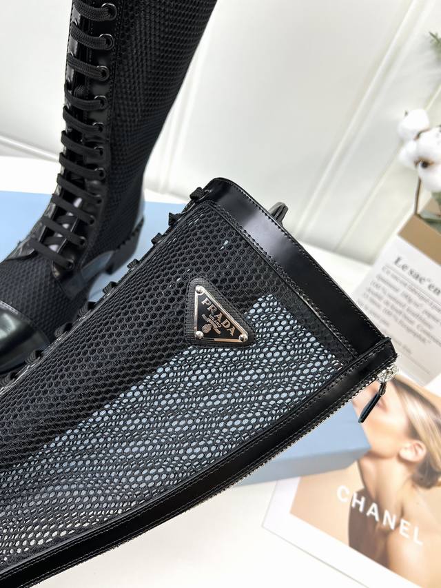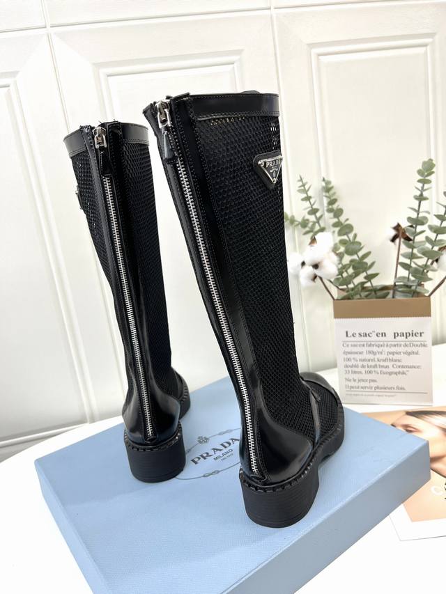 22Ss's latest prad mesh boots. Get the original 1:1 design with a custom-made, triangular buckle and zipper molded outsole! Upper: Imported open-edge leather. Lining: Imported water-dyed leather. Outsole: Eco-friendly rubber foam. Lightweight and comfortable. Heel height 4.5cm. Sizes: 35-39, 40, 41. Custom-made, non-refundable. Factory order.