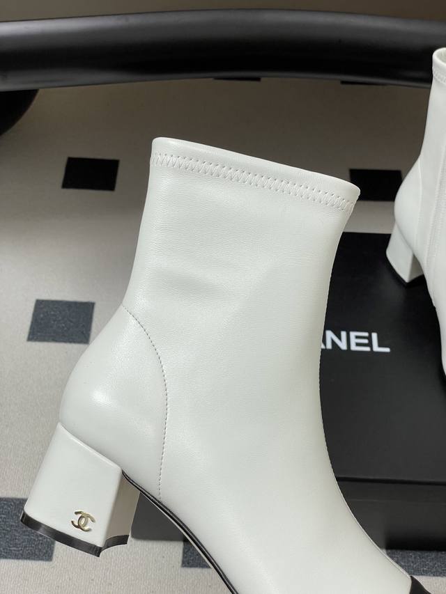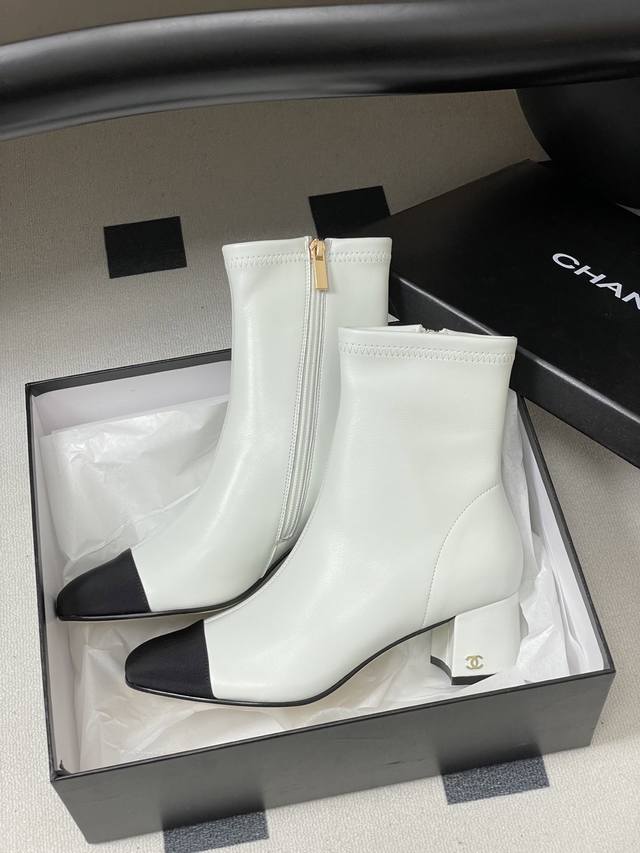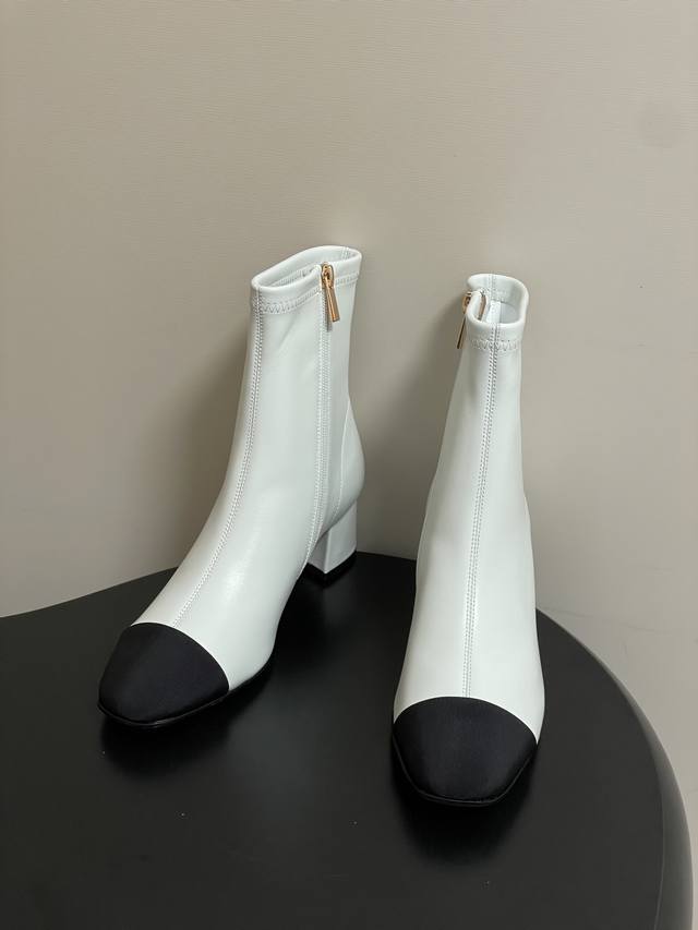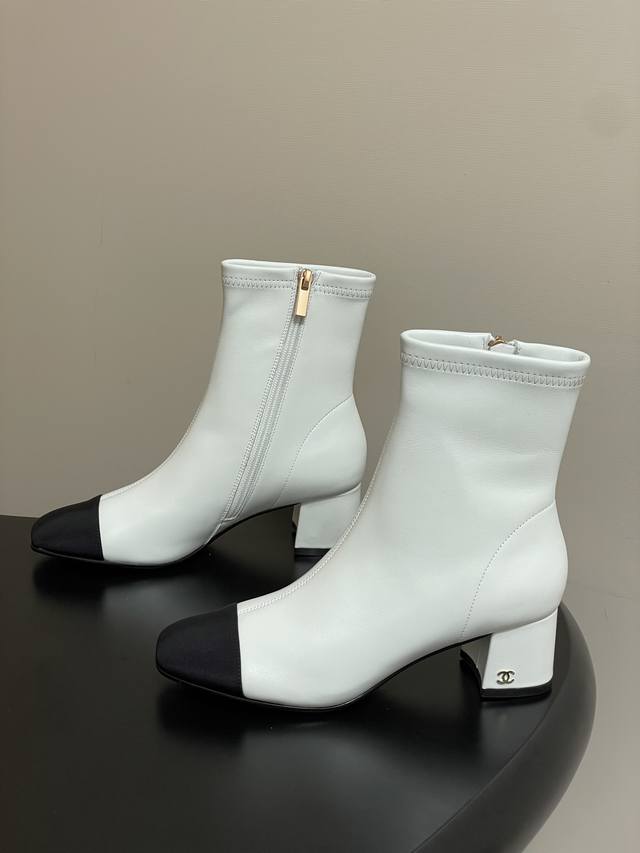 A timeless classic Chanel style. These square-toed, side-zippered stretch ankle boots with a chunky heel and a chunky heel are a runway style statement from the iconic Chanel collection. The side zipper allows for easy on and off! The stretch leather fabric is incredibly soft and provides a snug fit, creating a comfortable and elegant look. They'll elongate your legs! Upper: Custom stretch sheepskin Lining: Imported stretch Lycra Footbed: Goatskin Sole: Italian Grade A leather outsole Heel Height: 5cm Sizes: 35-39 34, 40, 41, 42 Made to order, no returns or exchanges