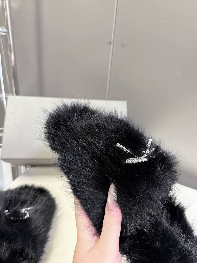 Balenciaga's latest autumn/winter bow-knot furry slippers. A favorite among fashion bloggers and celebrities, this winter must-have is stylish yet understated. Lined with faux fox fur, this slippery, soft, and skin-friendly slip-on slipper feels incredibly comfortable. Exquisite hand-sewn stitching and bow-knot diamond embellishments create a luxurious feel. Original rubber outsole for a non-slip, wear-resistant finish. Size: 35-40.