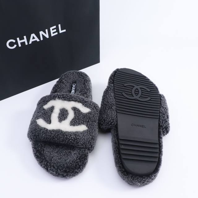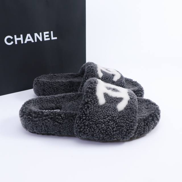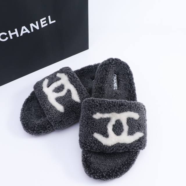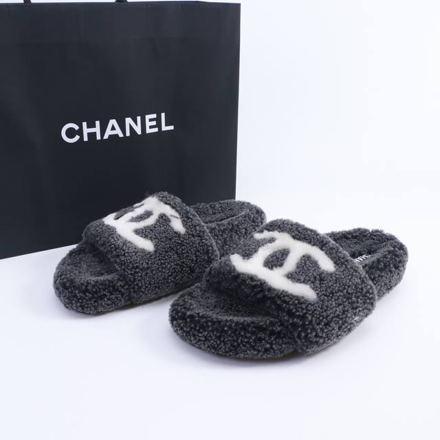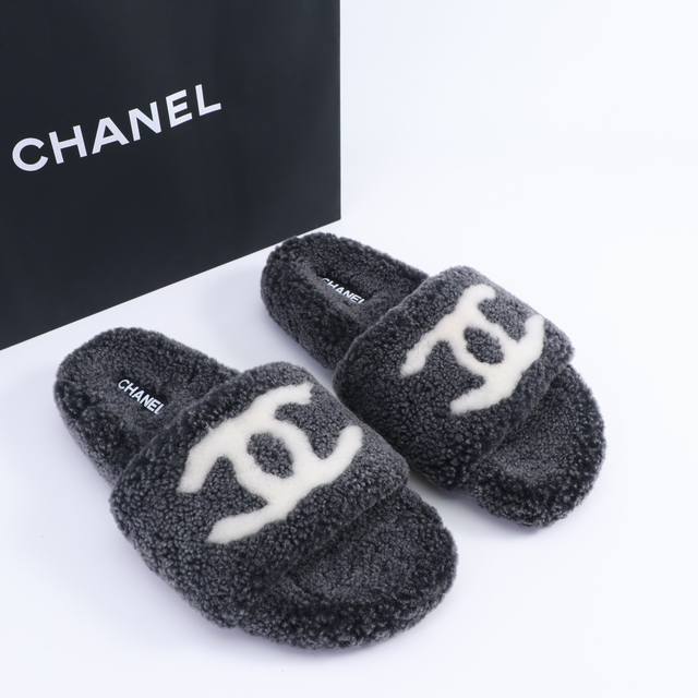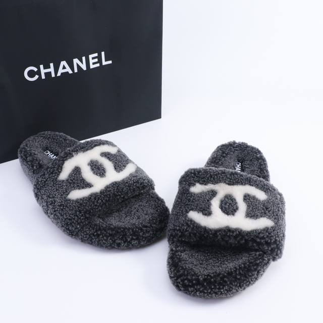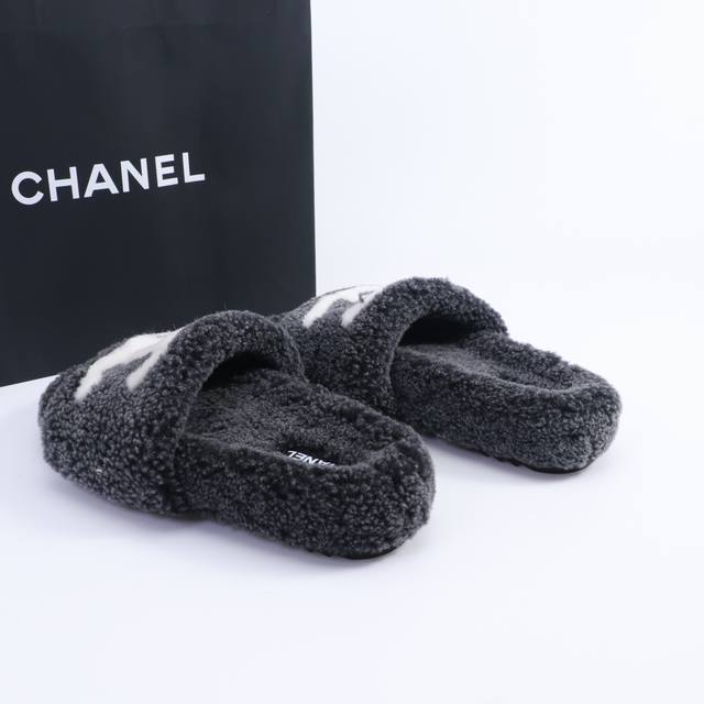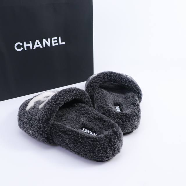 Chanel Chanel 2025 new autumn and winter lazy sheep real gradient two-color wool lazy slippers diamond embroidery small Chanel wool slippers