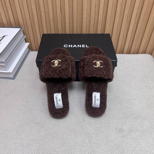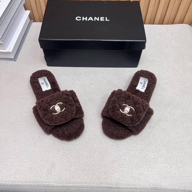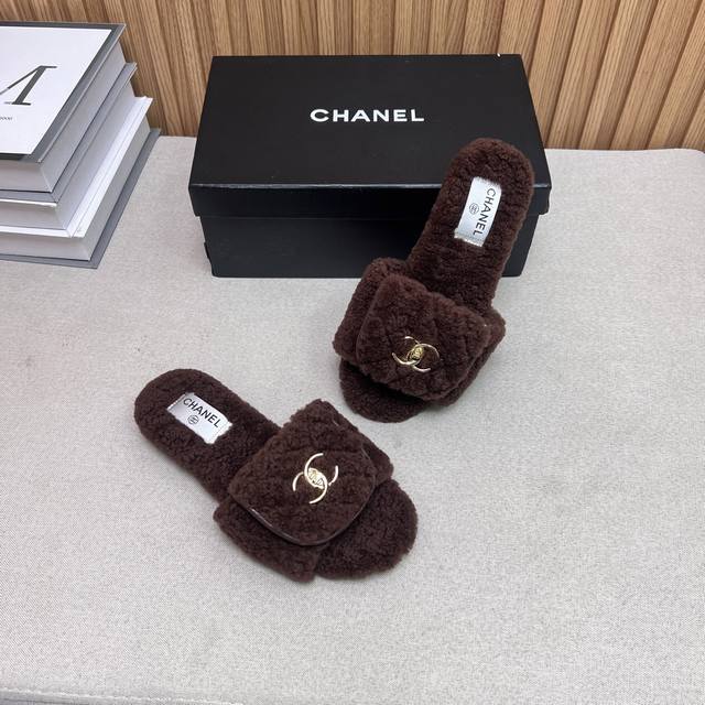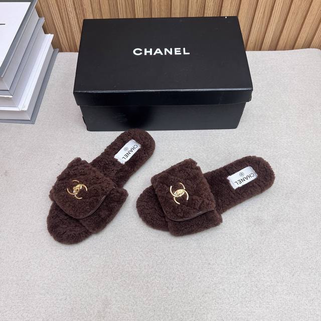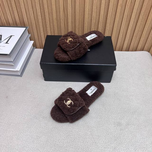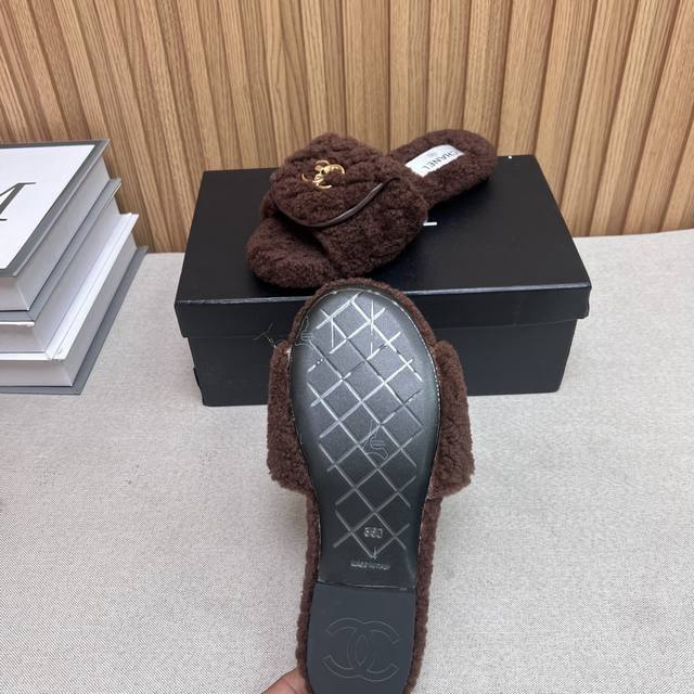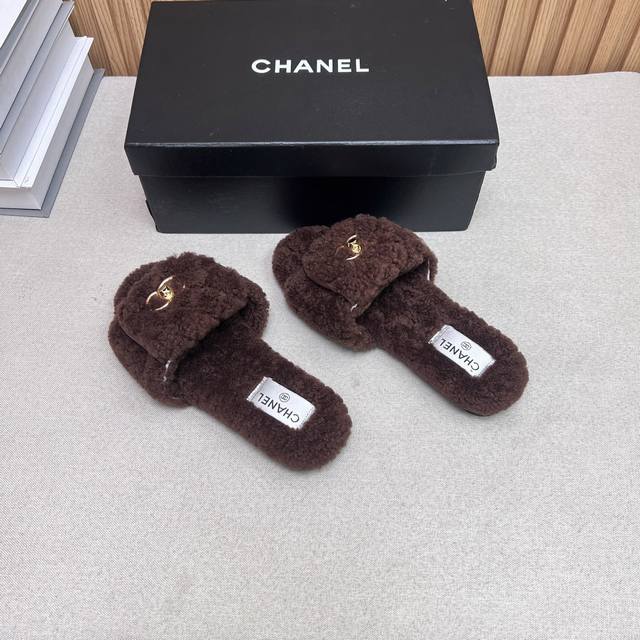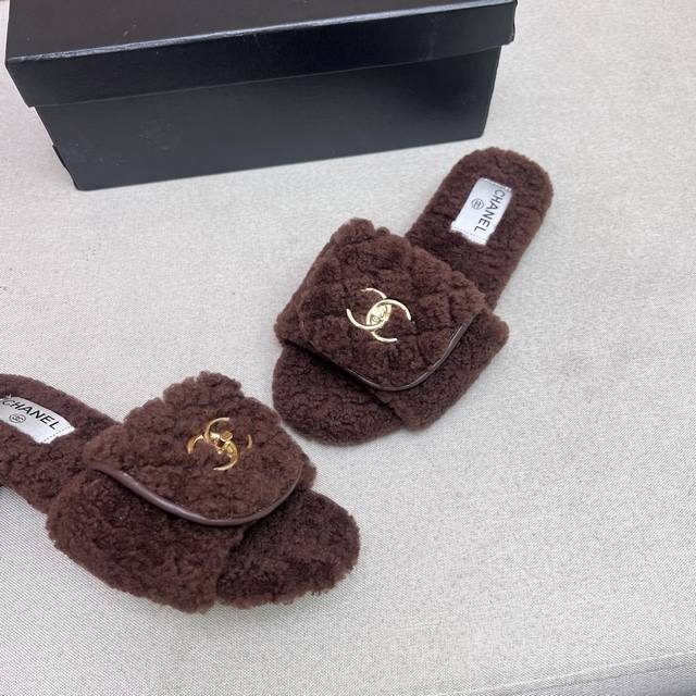 Chanel Chanel 2025 new autumn and winter lazy sheep real wool lazy slippers diam