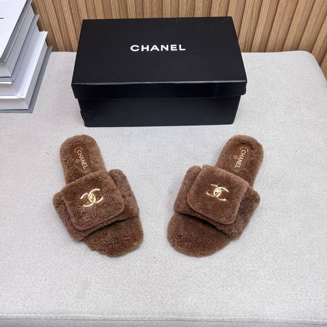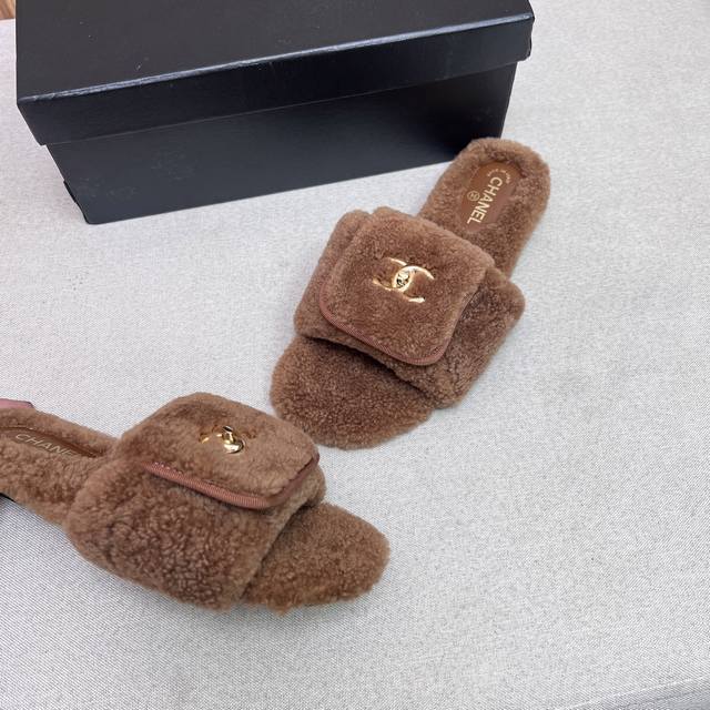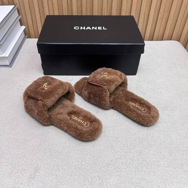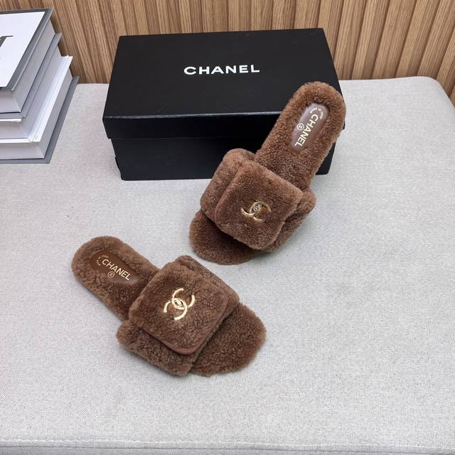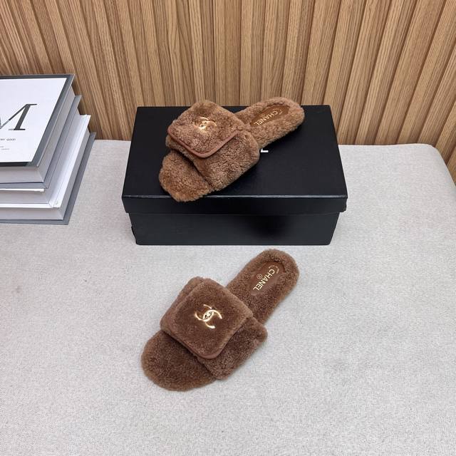Chanel Chanel 2025 new autumn and winter lazy sheep real wool lazy slippers diam