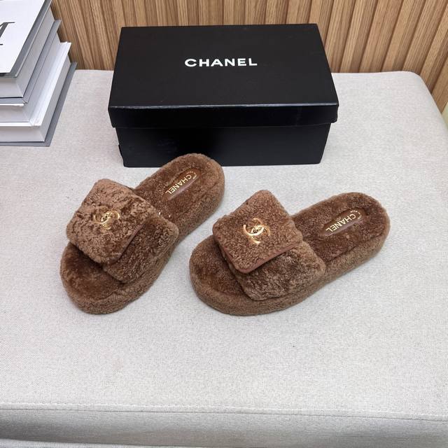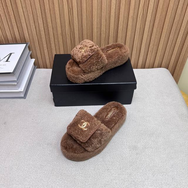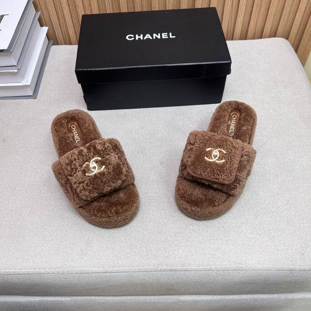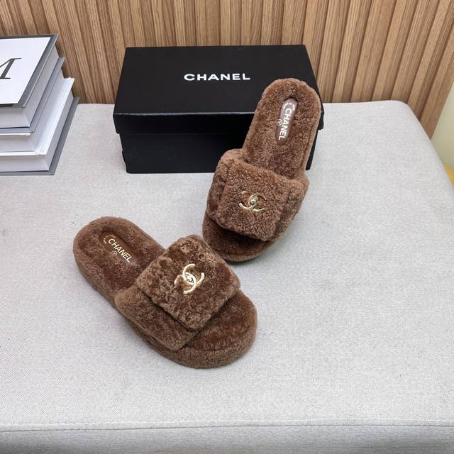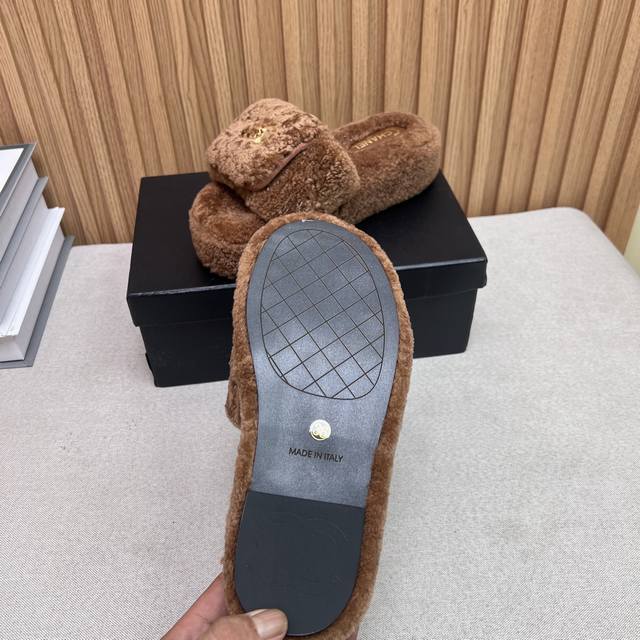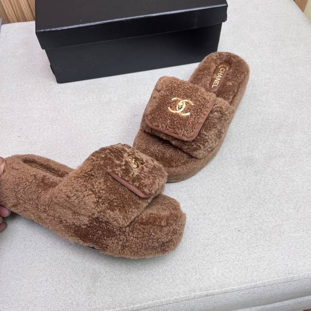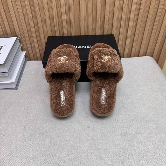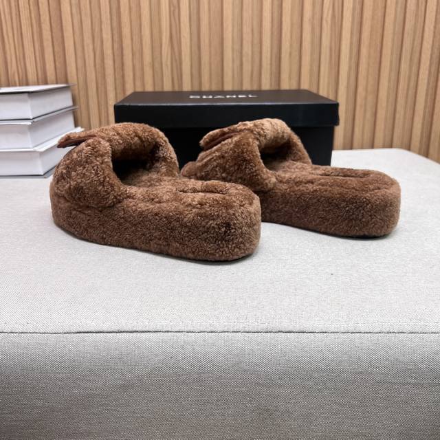 Chanel Chanel 2025 new autumn and winter lazy sheep real wool lazy slippers small Chanel diamond thick bottom wool slippers