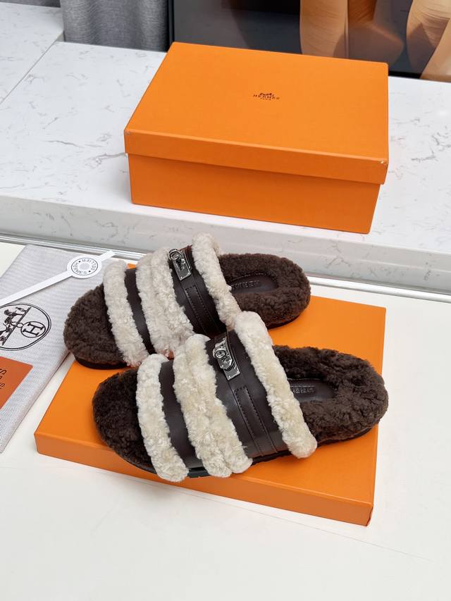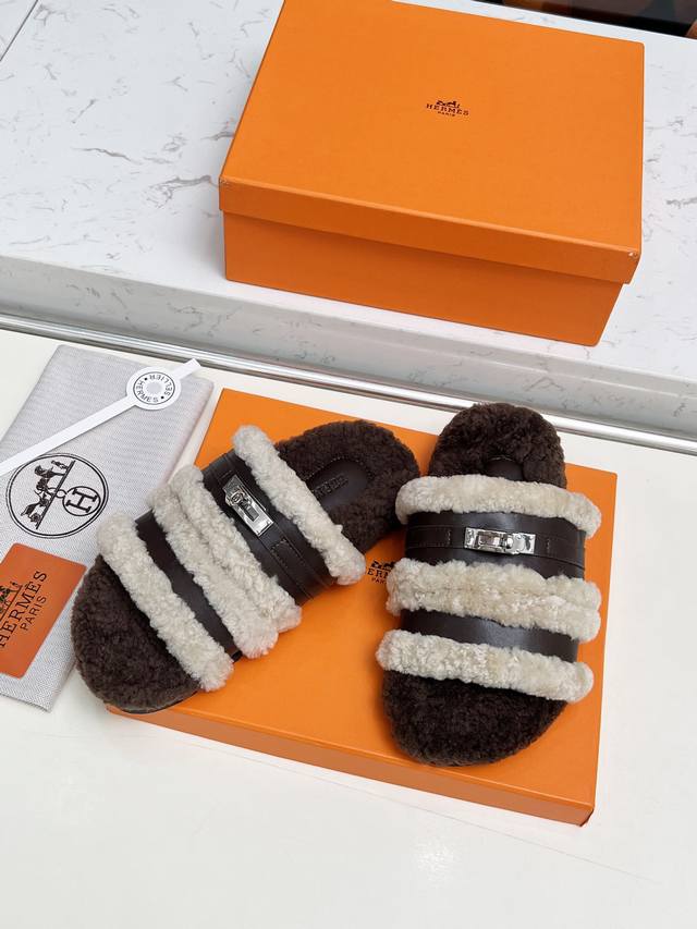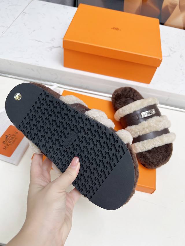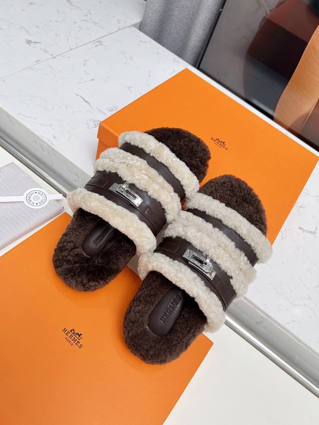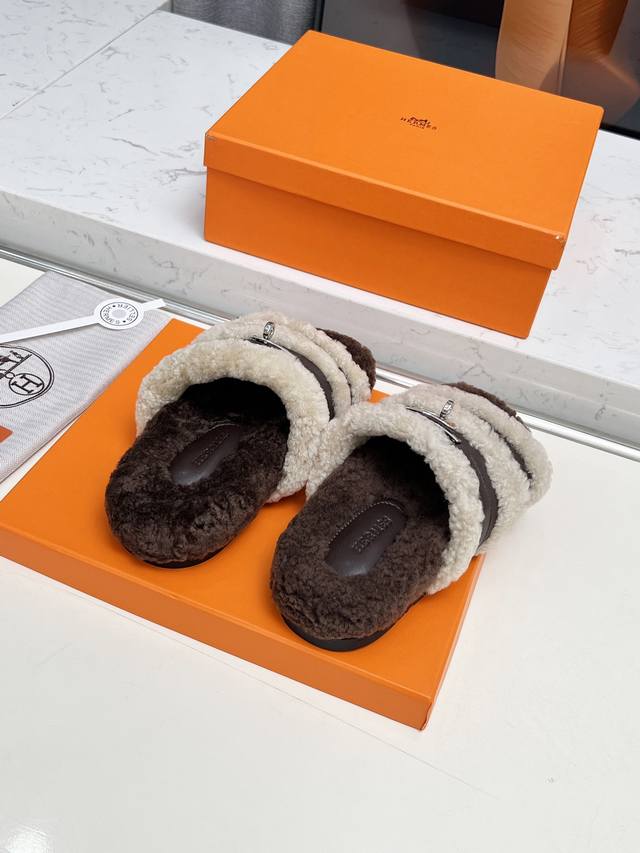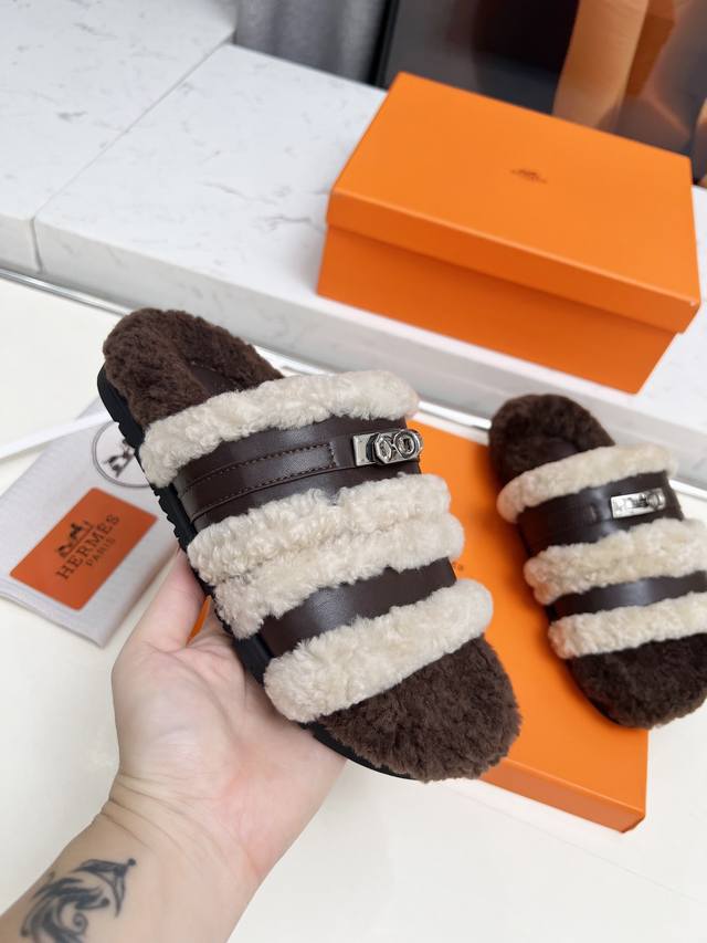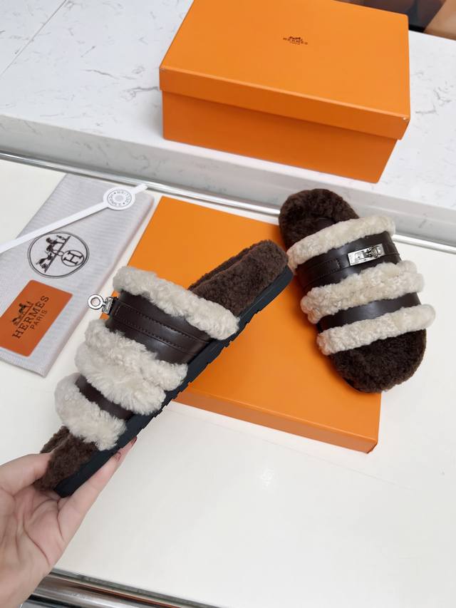 Fur Slippers Hermes fur and leather curly fur slippers. This year's fabrics are all A+ fur and leather curly fur, which is very cute and feels like stepping on clouds. You can wear it barefoot or with socks, which is very fashionable.