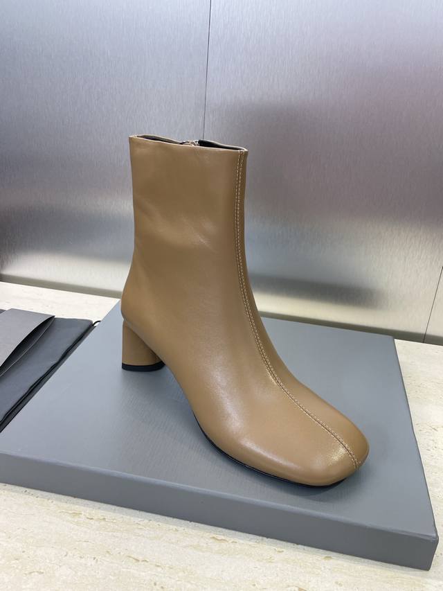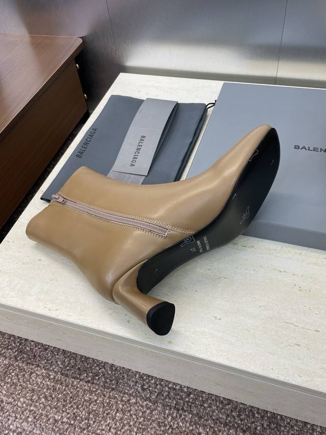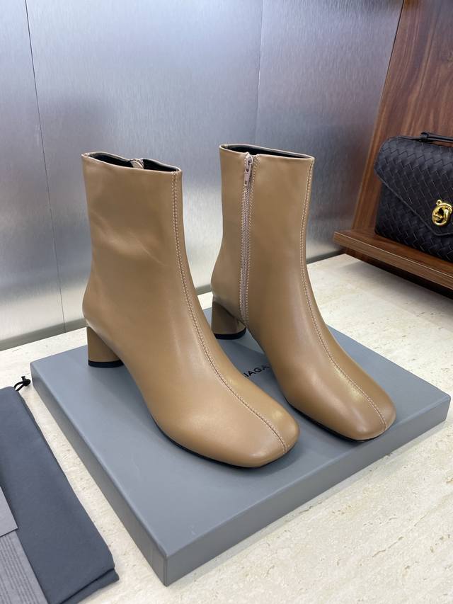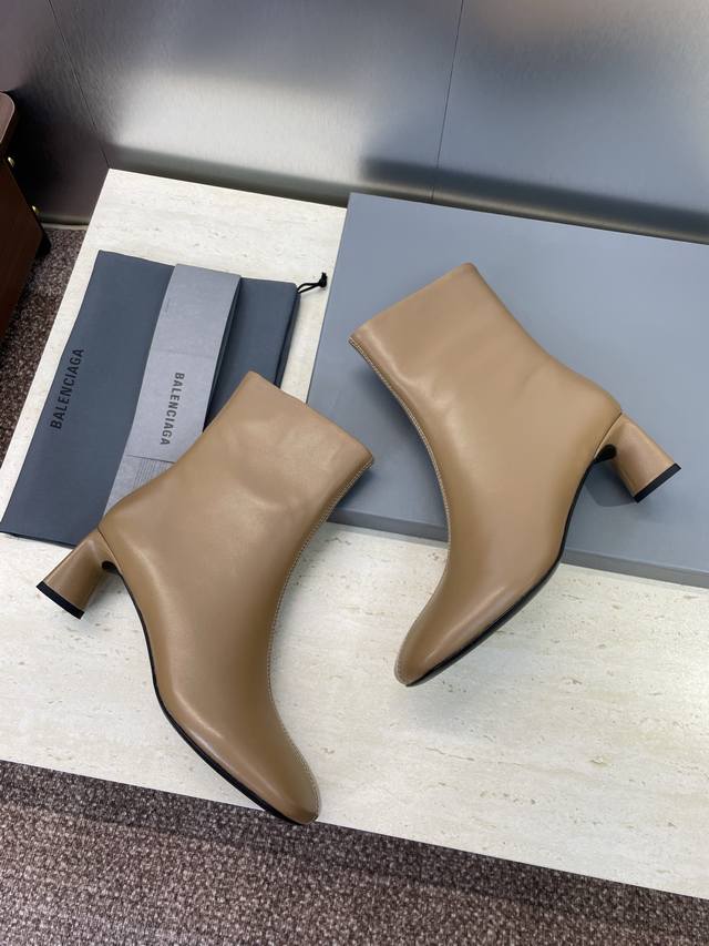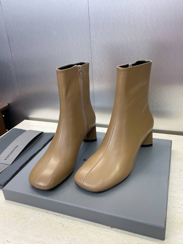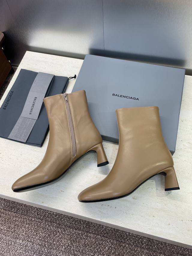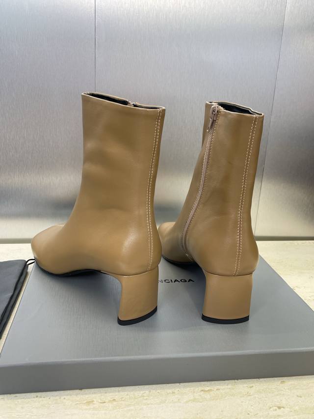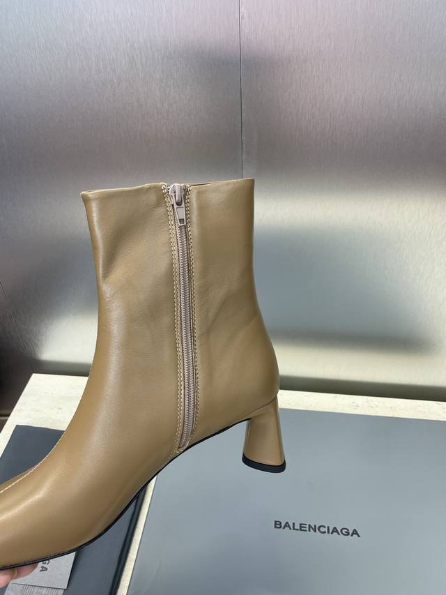 Balenciaga 2025 autumn and winter new style and nude Martin women's short boots Balenciaga letter logo mid-heel square toe side zipper motorcycle rider boots