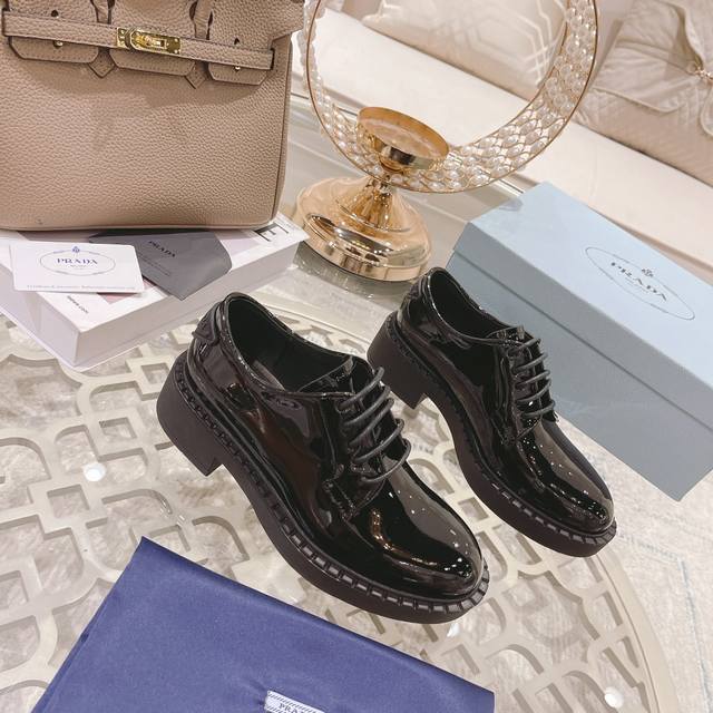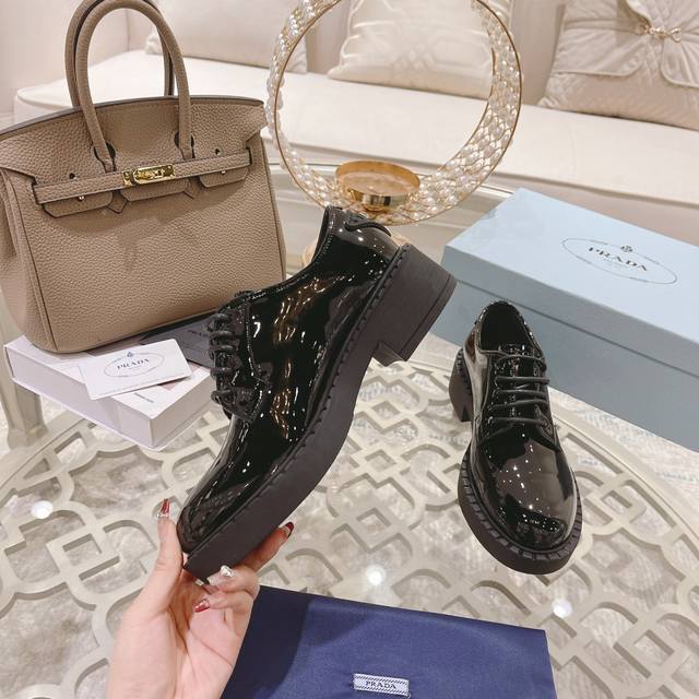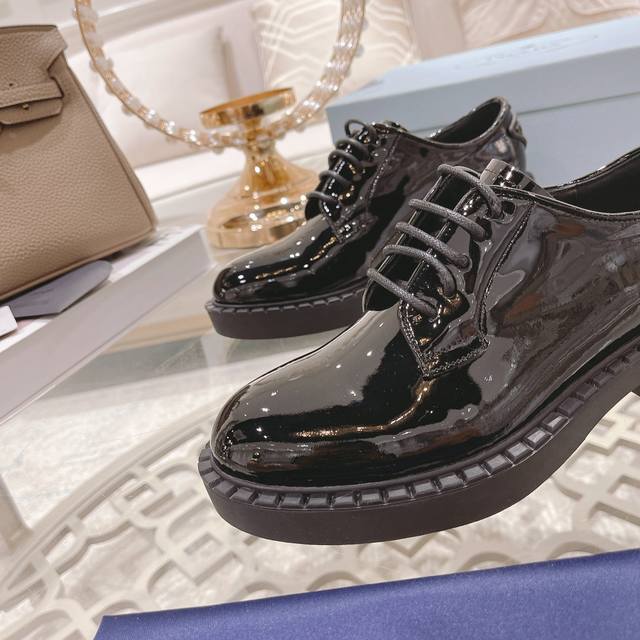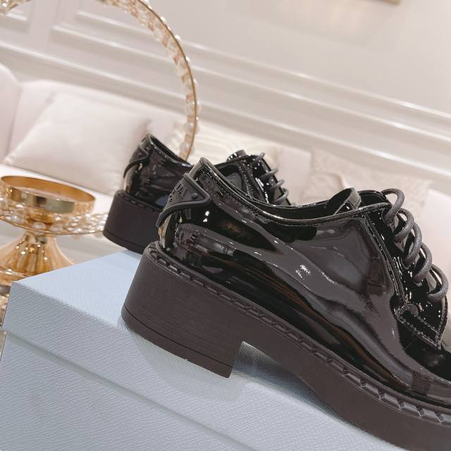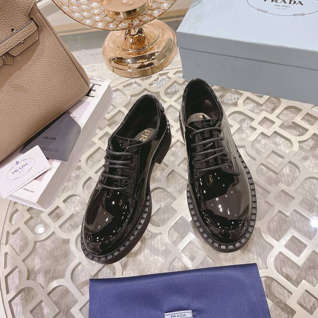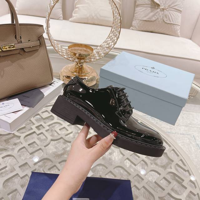 factory p, Pula counter & official website latest model, original 1:1 drop glue triangle logo, surface leather: cow edge bead cow patent leather, lining leather: water dyed cow leather lining, 35-39 40, 41 can be customized, cannot be exchanged,