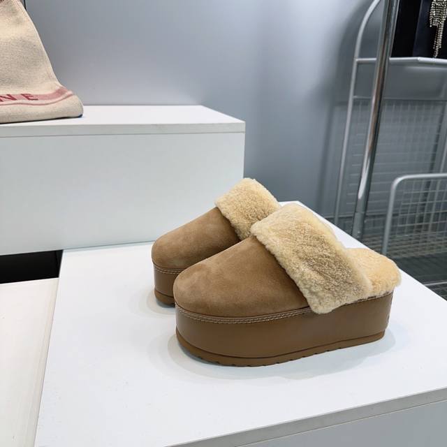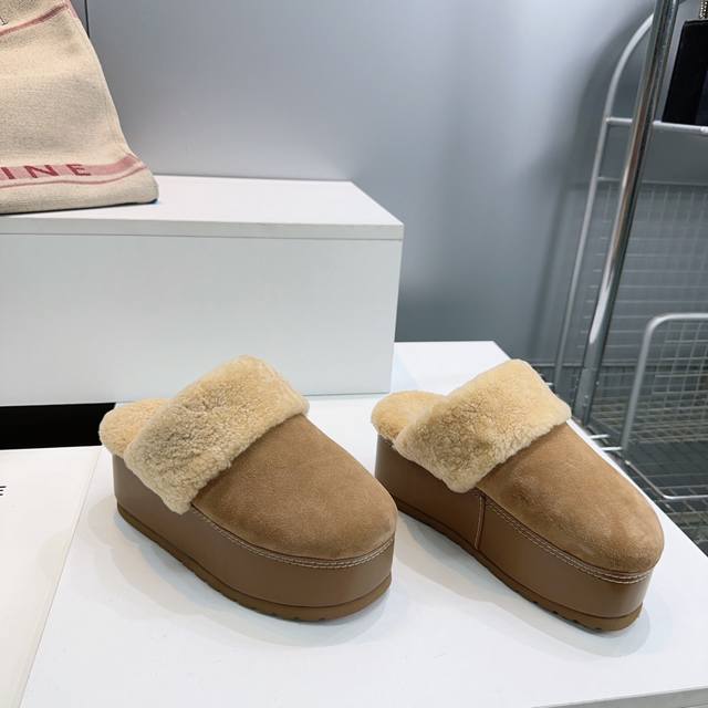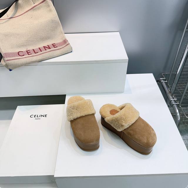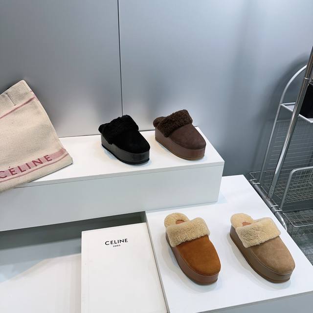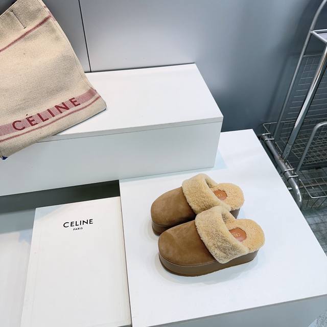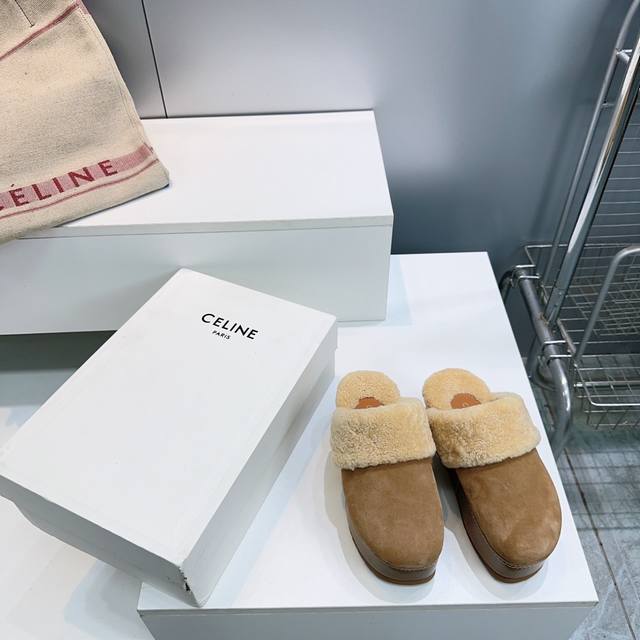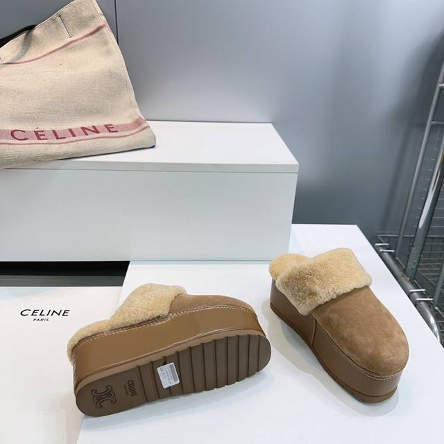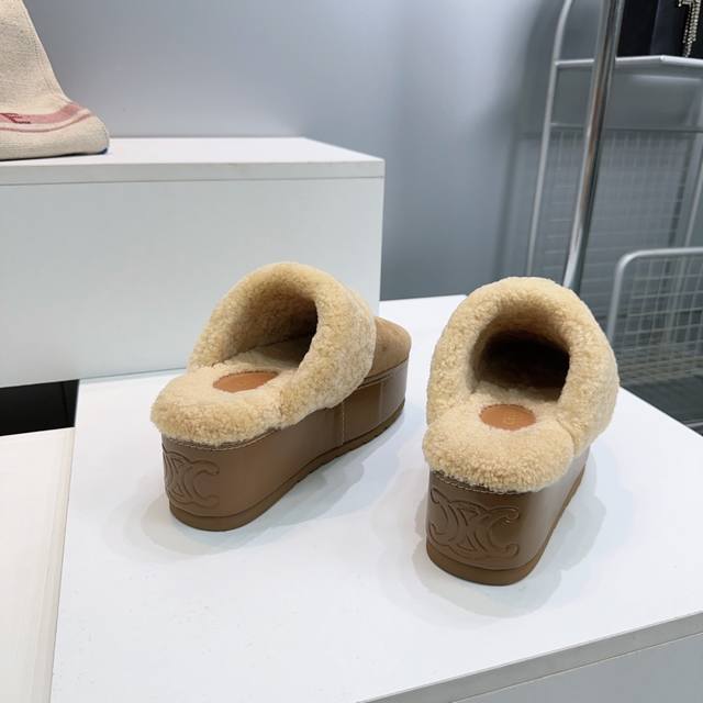 High quality factory delivery! Top quality Celine 2025Ss autumn and winter new Arc de Triomphe lambswool Birkenstock thick-soled platform slippers, very comfortable and warm to wear!