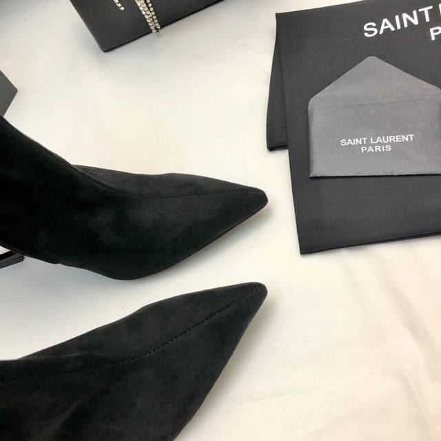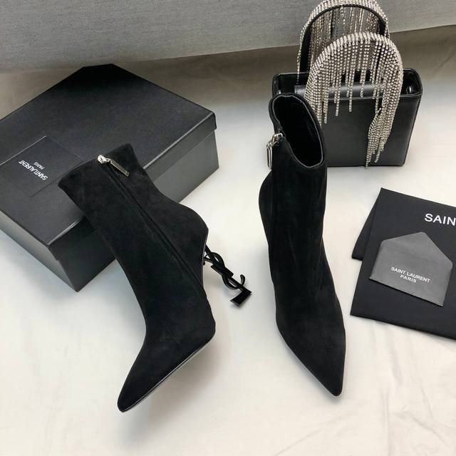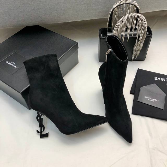leather, stretch PU Saint Lauren Ysl letter-heeled ankle bootsA must-have for t