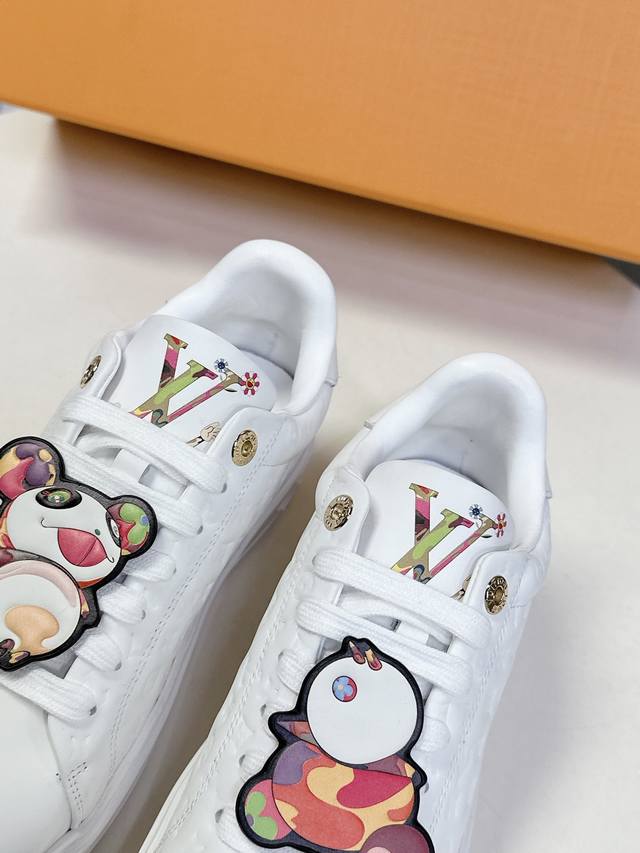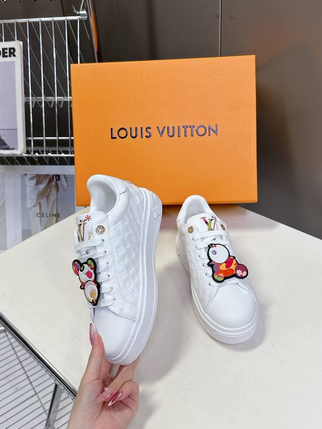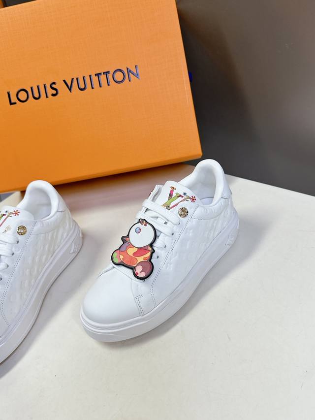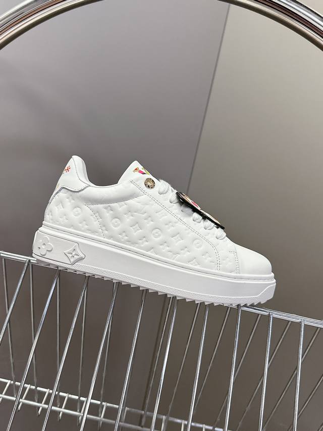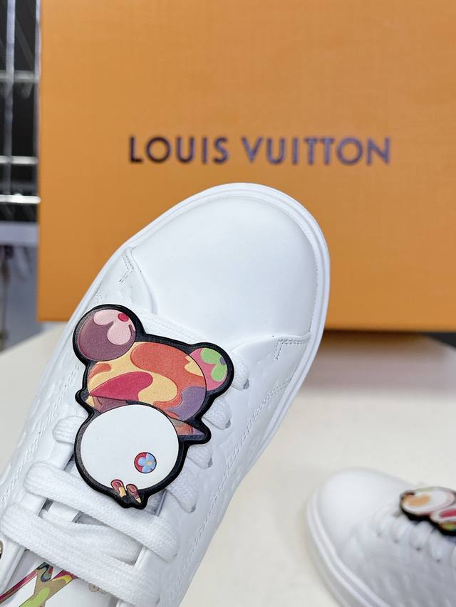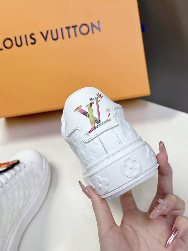 Louis Vuitton couple's white sneakers are highly recommended by many influencers and fashion bloggers. The simple shoe shape is grid-like, with the brand logo embossed on the hardware buckle and monogram stitching. The tongue has an LV Circle rubber patch with rich details. The upper is made of original custom silk cowhide leather, and the lining is water-dyed cowhide. The one-piece molding process is EVA insole with original mold. Size: Women's 35-40 Men's 39-45