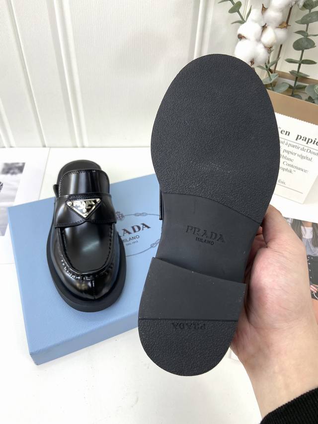 prad* Our upgraded spring/summer triangle-label loafers. Compared to last year's classic loafers, this one features a silver welt with a gear print design, giving it a more refined and fashionable look! The thick sole adds a touch of height! Original, disassembled, and recreated to evoke the original's signature, this premium, premium shopping experience! The upper is crafted from genuine, imported, open-edge, pearlized cowhide for a premium feel. The lining is made from imported, water-dyed cowhide. The ZP molded outsole is non-slip and wear-resistant. Available in sizes 35-41, 40, and 41, made to order. Factory direct sales.
