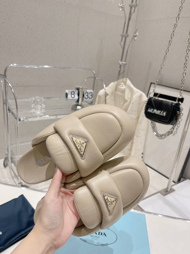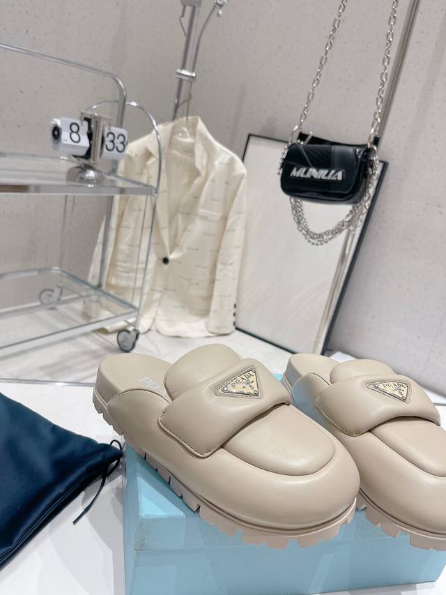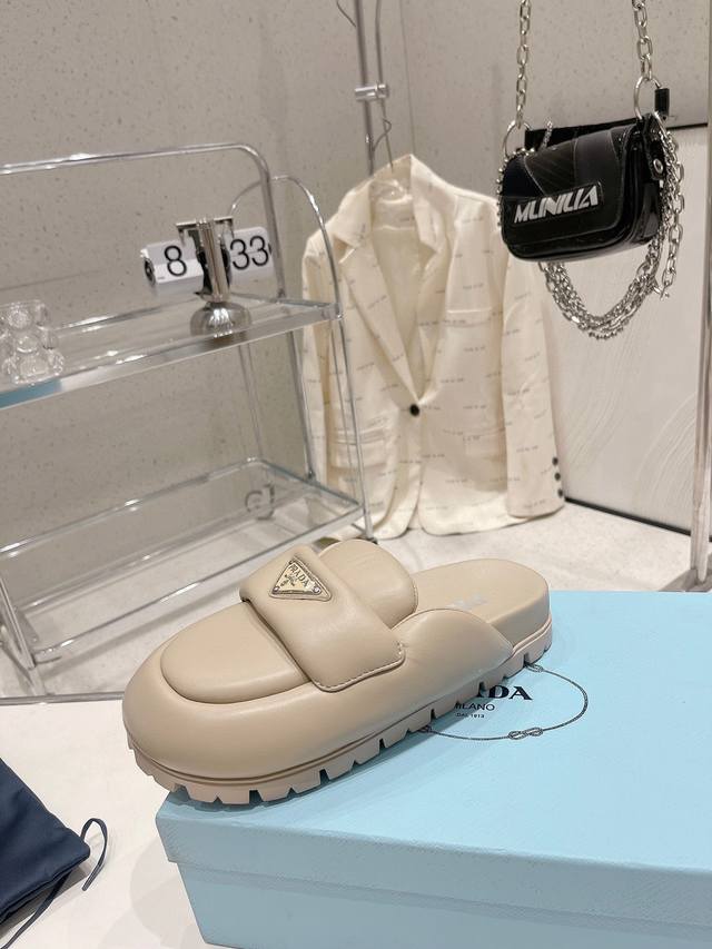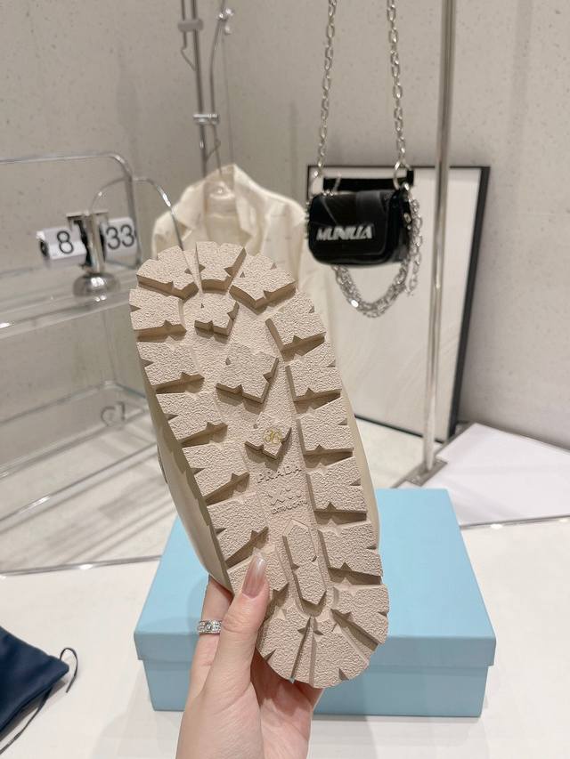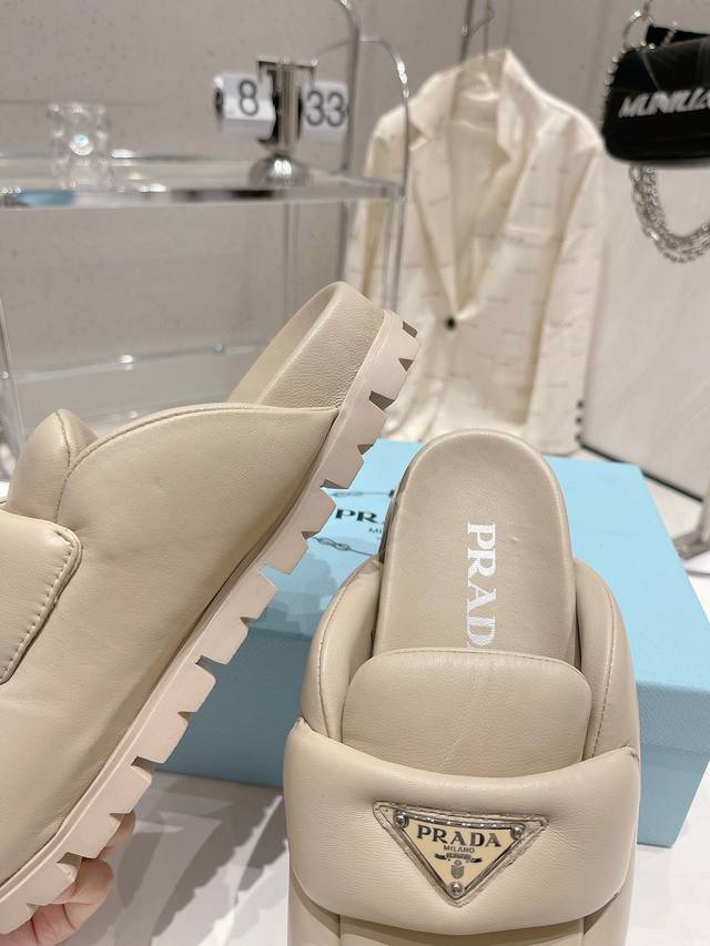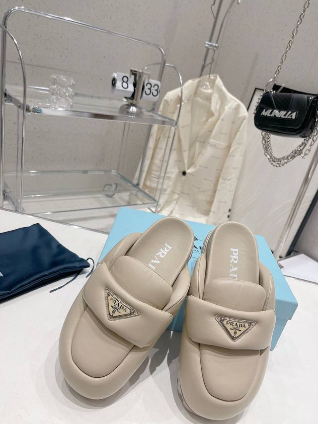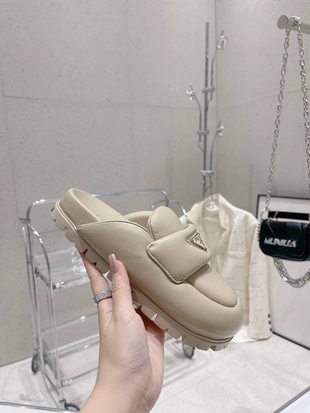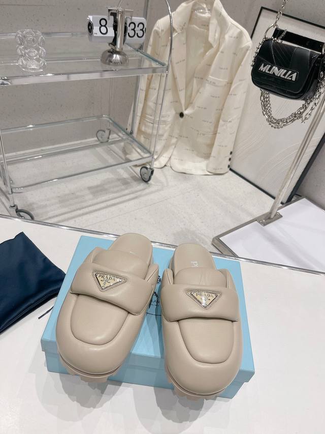 Prada's newest top-tier loafers are incredibly easy to wear. No need to bend down or tie shoelaces to change shoes, just slip them on and go. They're perfect for spring, summer, and fall. These mules have a rubber foam sole and are lightweight. The iconic Prada enamel triangle logo is instantly recognizable and versatile. I'm surprised Prada could create such a cute shoe, which shows just how popular loafers are! Material: Imported mixed-breed sheepskin Sizes: 35-41