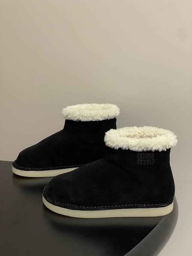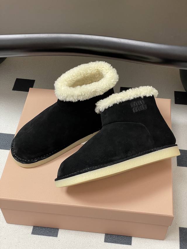 25Fw New Fall/Winter Miu Miu Suede Snow Boots with Wool Lining and Thick-Sole Ankle Boots