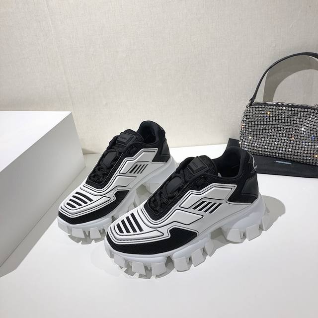 Factory Price: Prada: Latest Dad Shoe Series: Material: Imported space cotton + KPU injection molding; Lining: Imported silk sheepskin lining + fabric; Outsole: Original 1:1 molded rubber foam ultra-light outsole; Packaging: 1:1 heel height 5cm; Sizes: 35-44