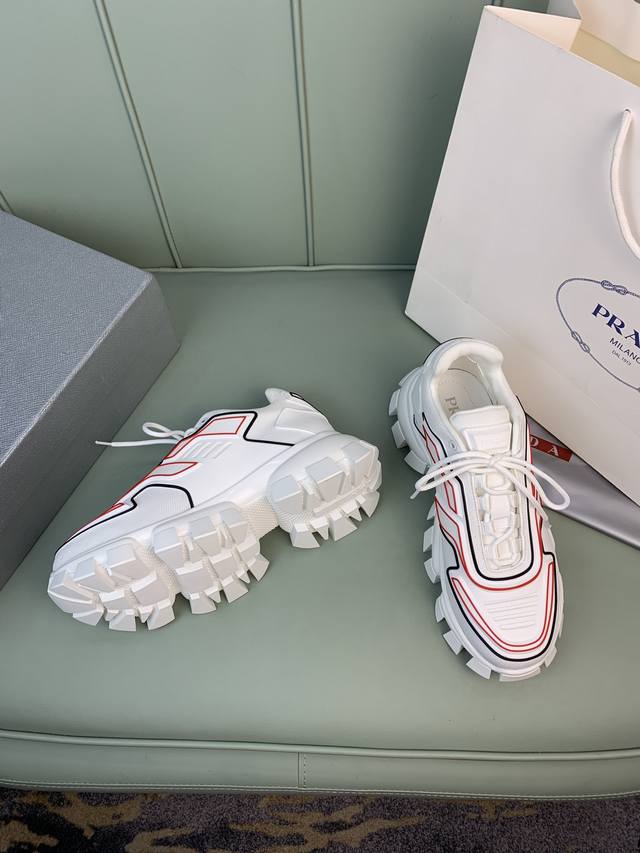 Factory Price: Prada: Latest Dad Shoe Series: Material: Imported space cotton + KPU injection molding; Lining: Imported silk sheepskin lining + fabric; Outsole: Original 1:1 molded rubber foam ultra-light outsole; Packaging: 1:1 heel height 5cm; Sizes: 35-44