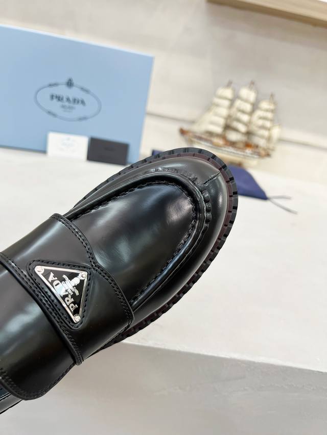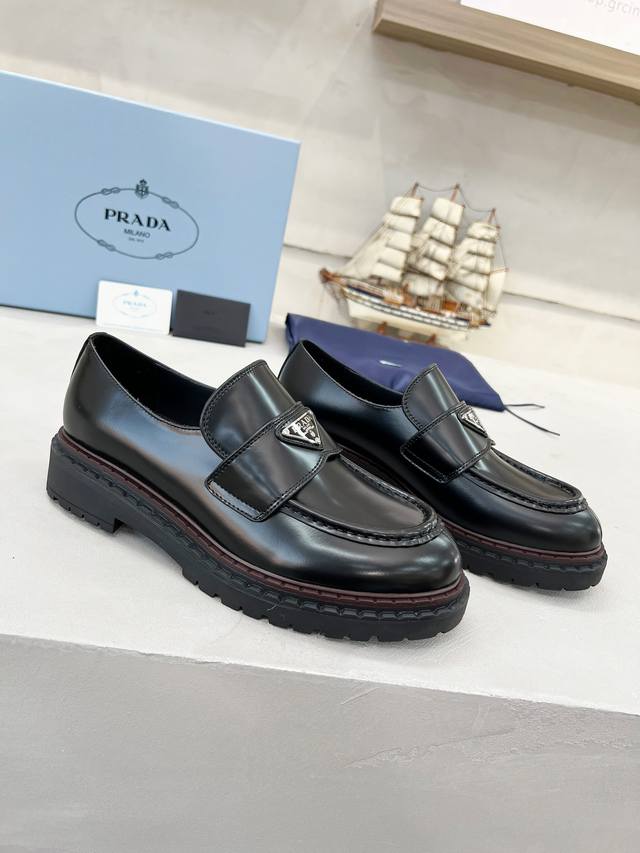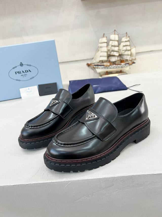 Factory Price: Prada men's and women's shoes, best-selling items in boutiques, same as the official website, high-quality delivery. Material: Original calfskin. Lining: Cowhide insole + cowhide lining. Outsole: Original TPU outsole. Sizes: Unisex: 35-45. Men's sizes +10.