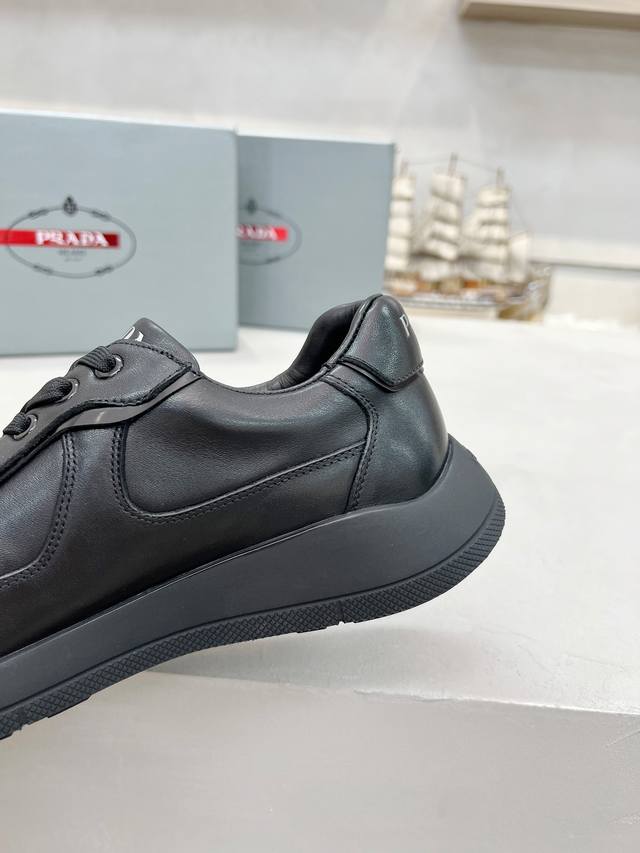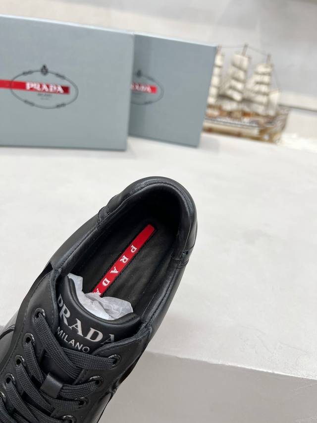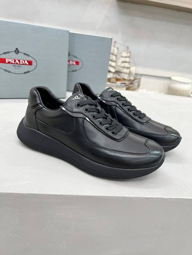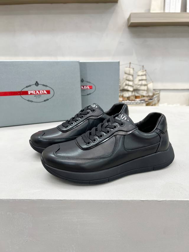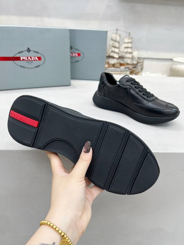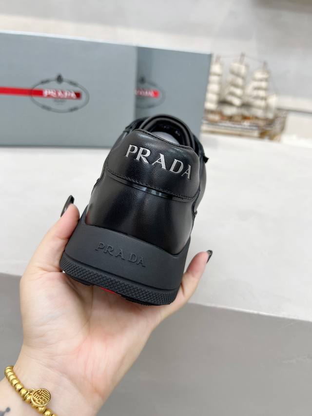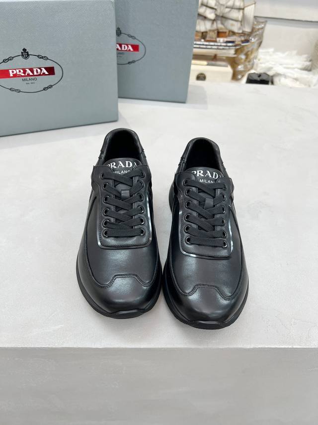 Factory Price: Prada men's shoes, best-selling item in boutiques, same as the official website, high-quality delivery. Material: Original cowhide leather. Lining: Cowhide insole + cowhide lining. Outsole: Original rubber sole. Sizes: 38-45. Size 45 is custom-made and non-refundable.
